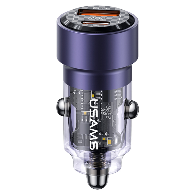 C39 60W A+C Dual Port Aluminum Transparent Fast Charging Car Charger
