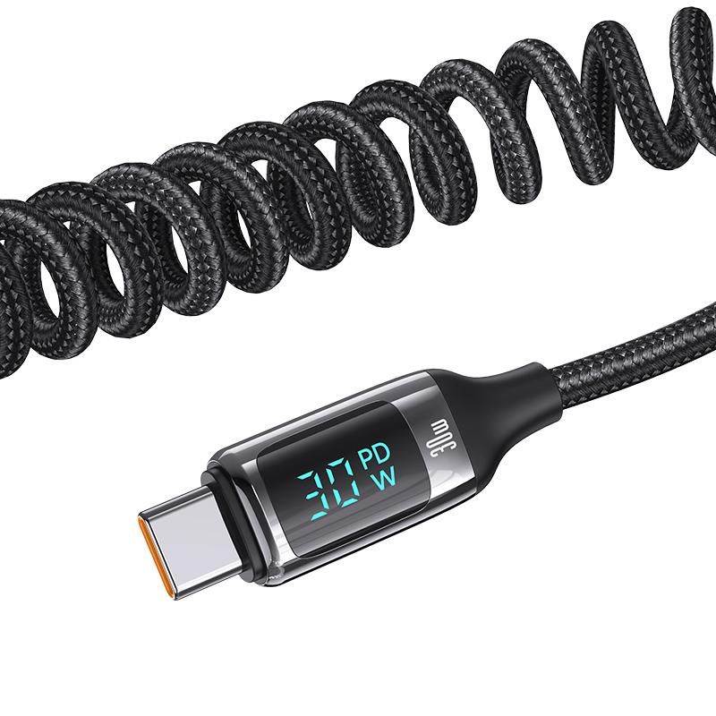 C37 60W A+C Digital Display Fast Car Charger with PD30W Type-C Spring Cable