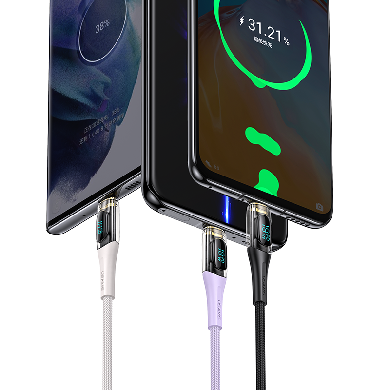 Type-C To Type-C PD 100W Transparent Digital Display Cable -- Shadow Series