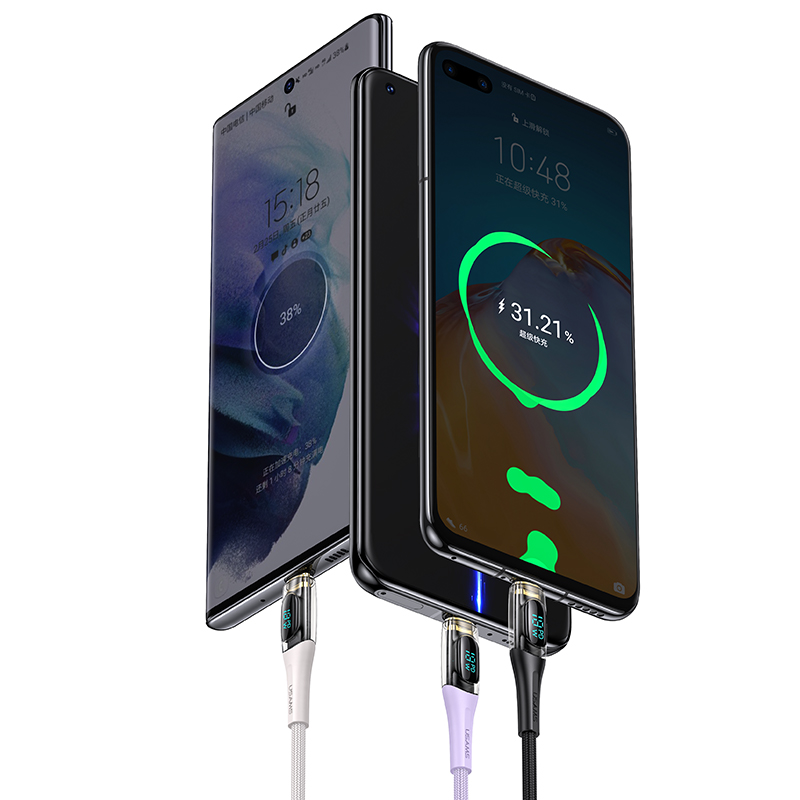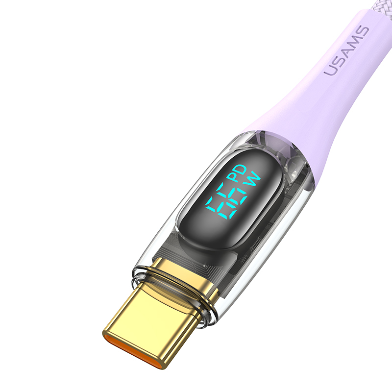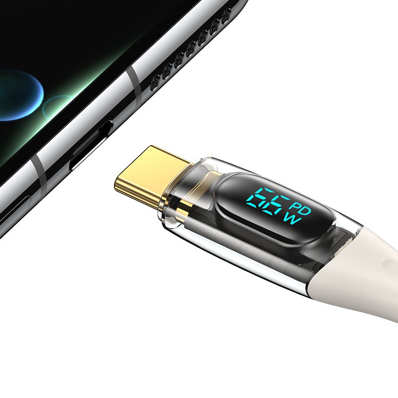 Type-C 6A 66W Transparent Digital Display Cable -- Shadow Series