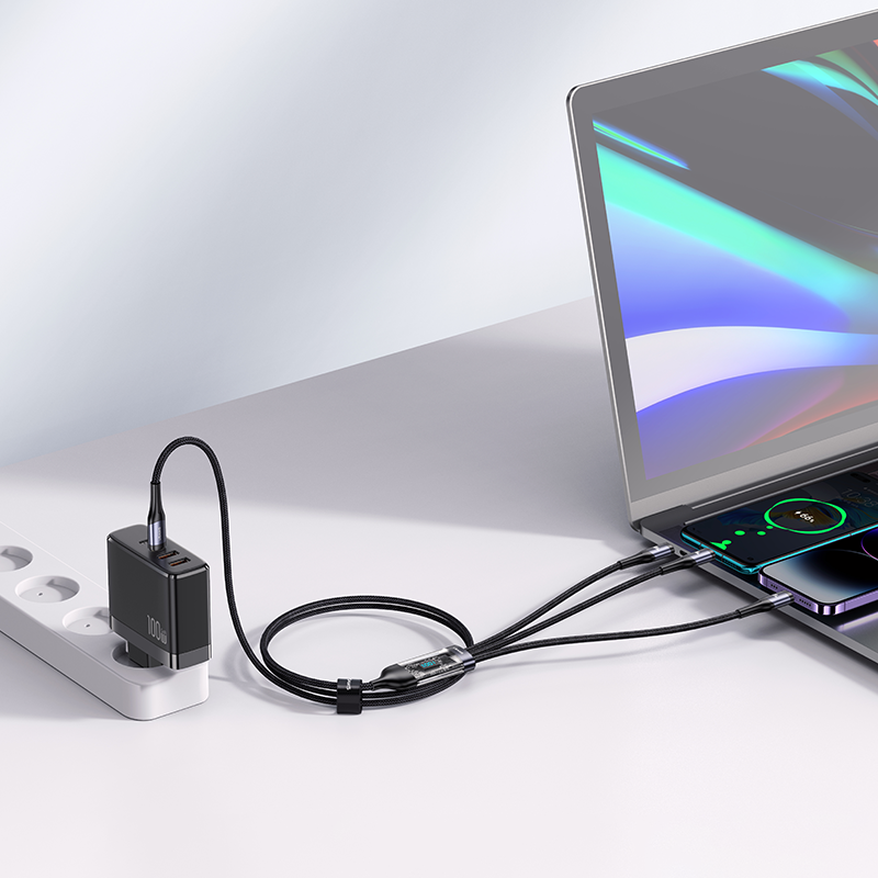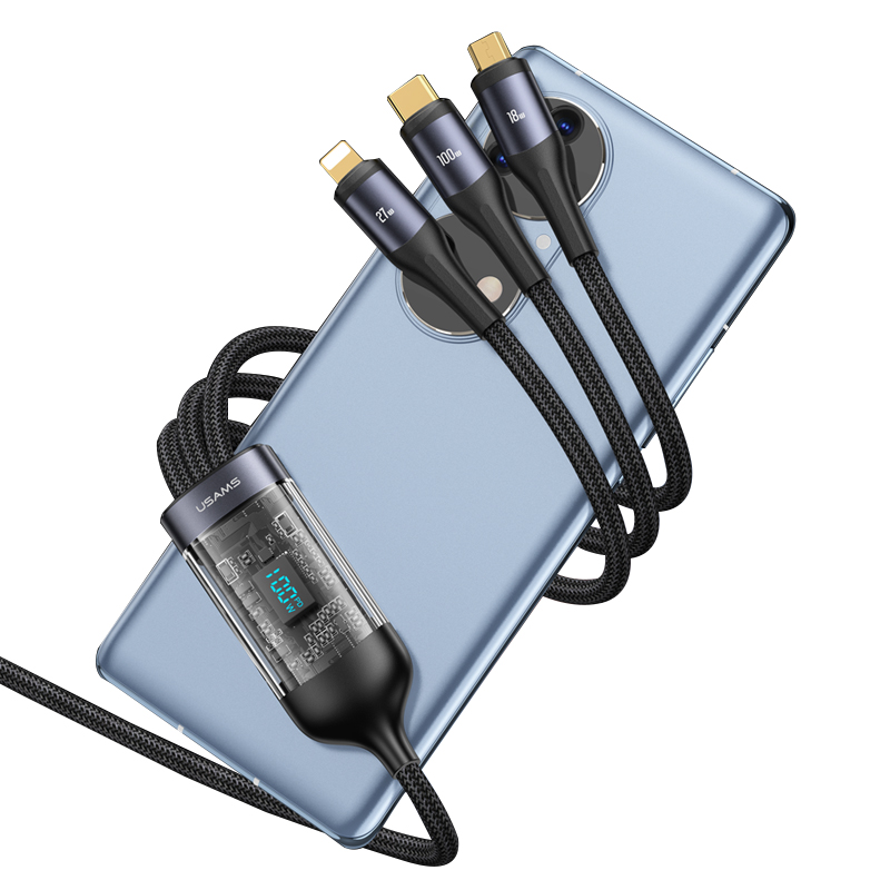 U83 3IN1 Transparent Digital Display PD100W Fast Charging & Data Cable