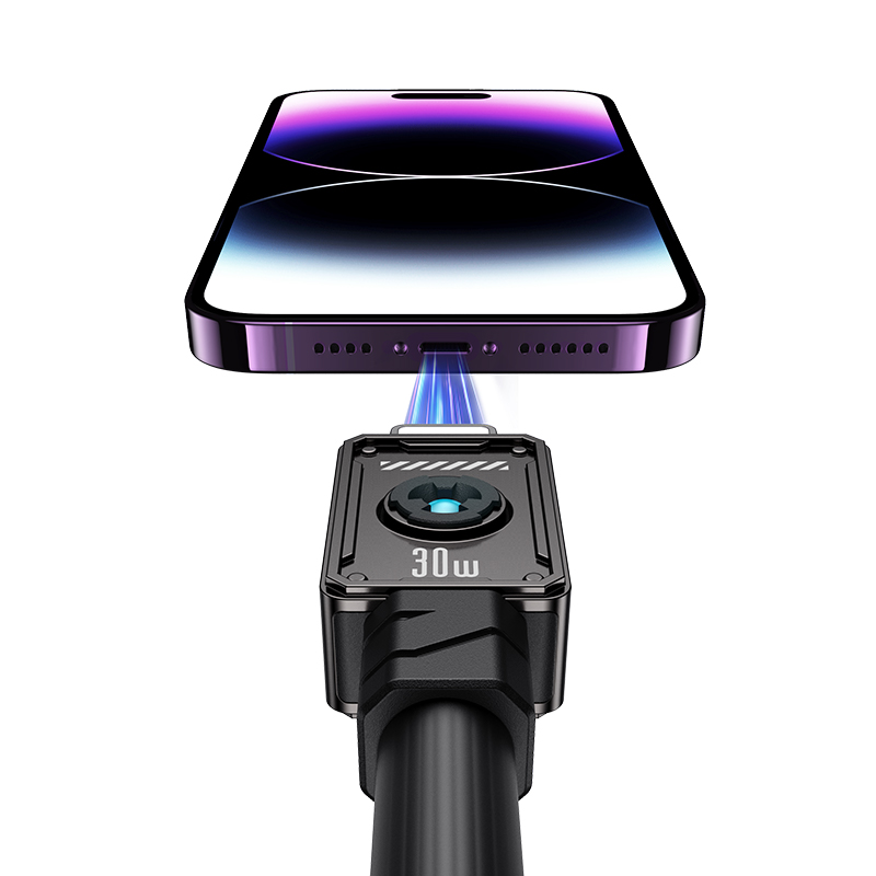 Type-C To Lightning 30W Zine Alloy Fast Charging & Data Cable With Light 1.2m-Mecha Series