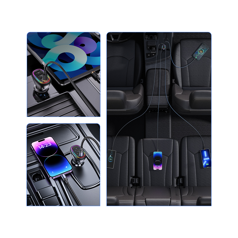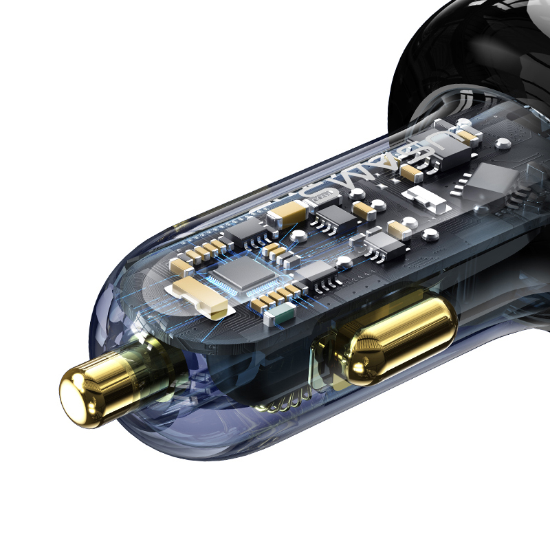 C34 PD30W AAAC 48W Transparent Fast Car Charger With Colorful Light