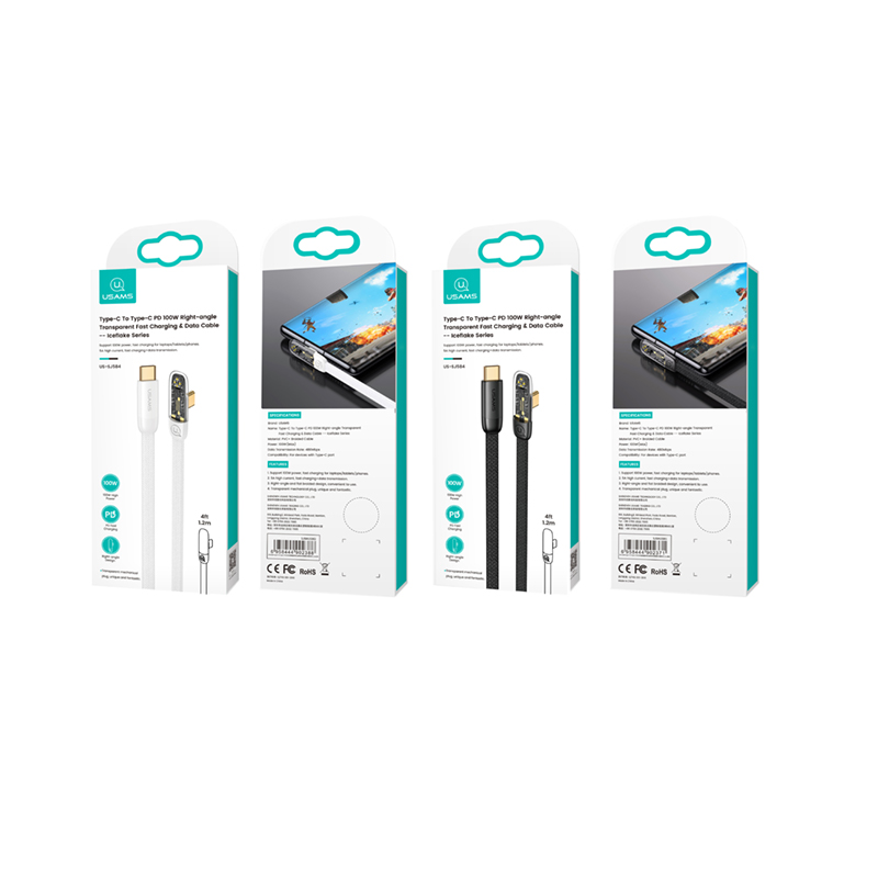 Type-C To Type-C PD 100W Right-angle Transparent Fast Charging & Data Cable -- Iceflake Series