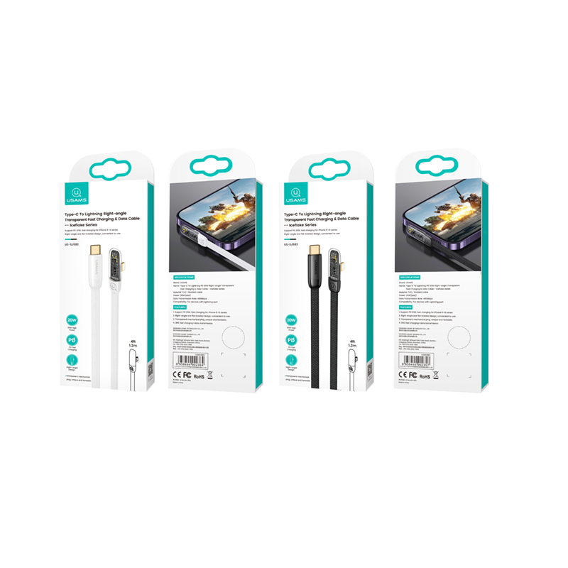 Type-C To Lightning PD 20W Right-angle Transparent Fast Charging & Data Cable -- Iceflake Series