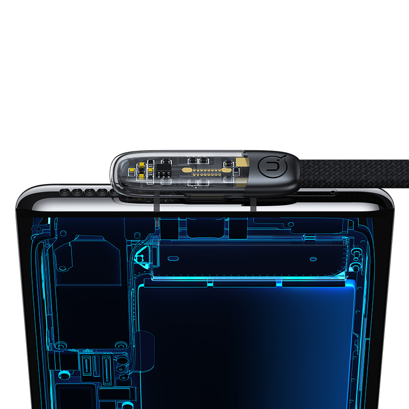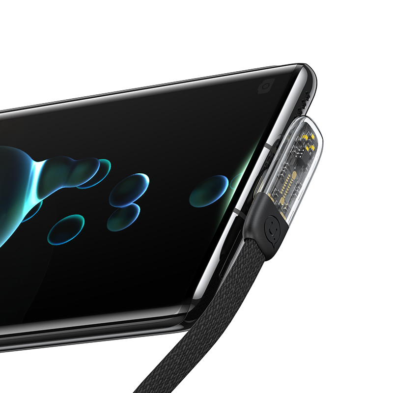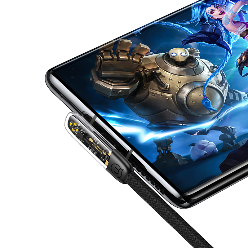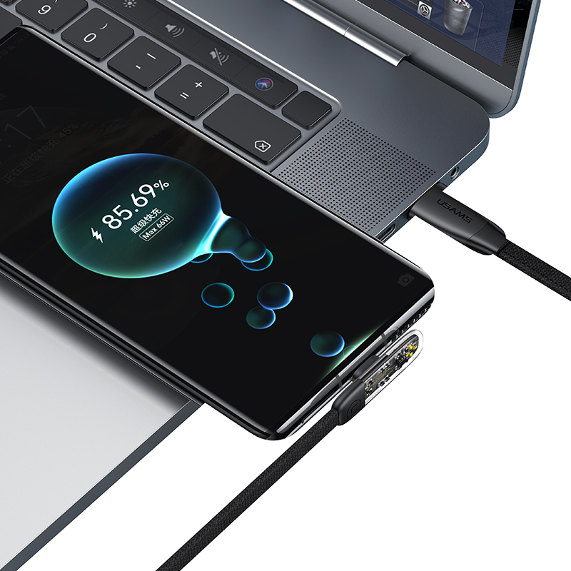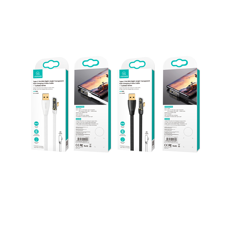 Type-C 6A 66W Right-angle Transparent Fast Charging & Data Cable -- Iceflake Series