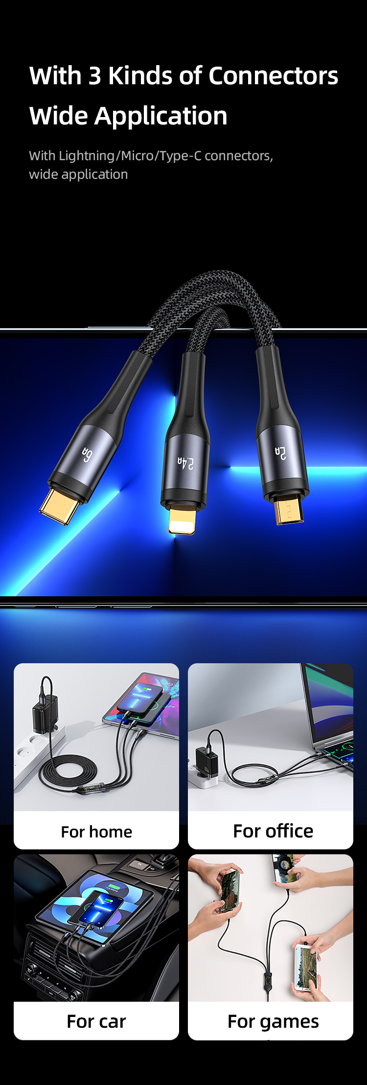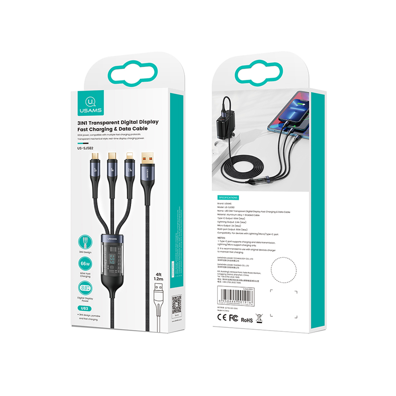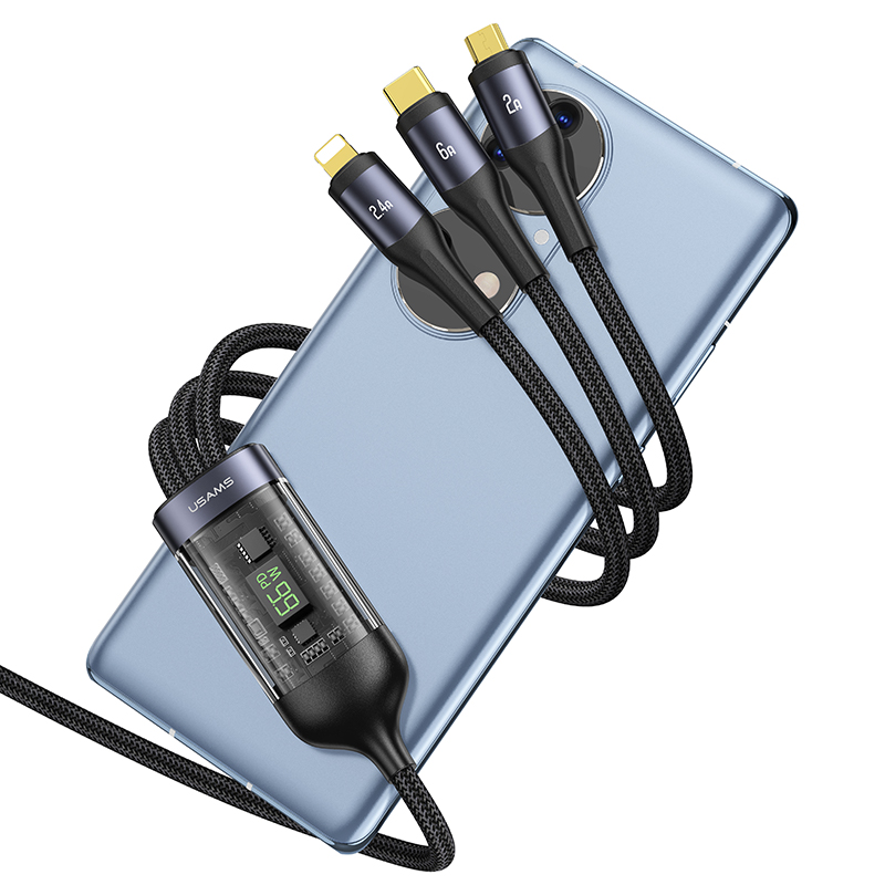U83 3IN1 Transparent Digital Display Fast Charging & Data Cable
