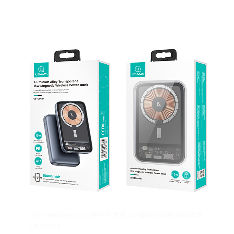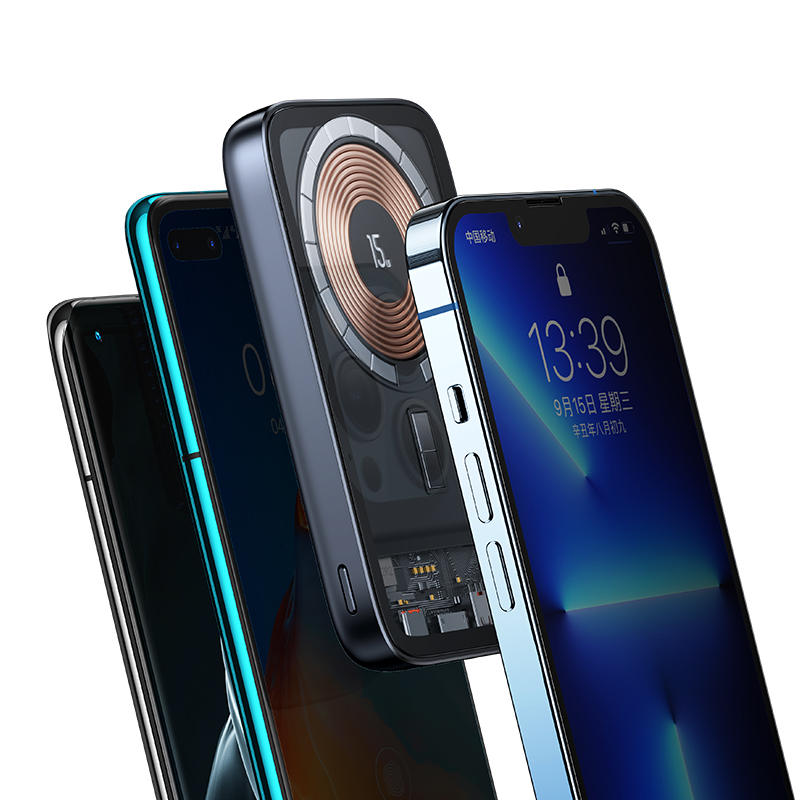 PB67 PD20W+QC3.0 Aluminum Alloy Transparent 15W Magnetic Wireless Power Bank