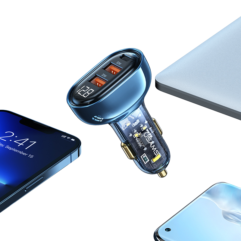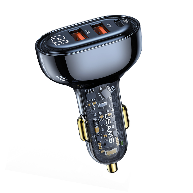 80W 3 Ports Transparent Digital Display Fast Car Charger--Icicle Series