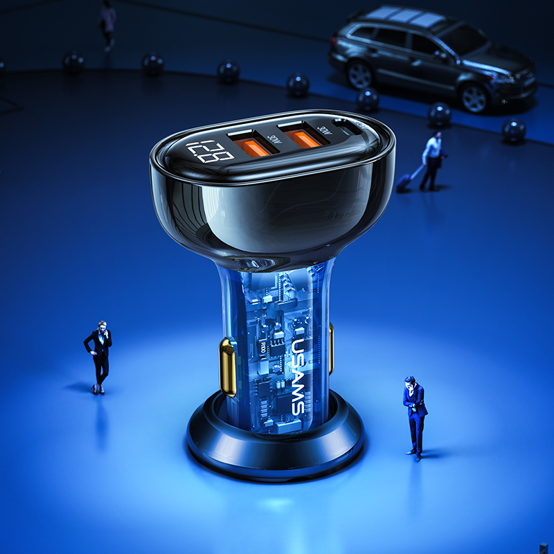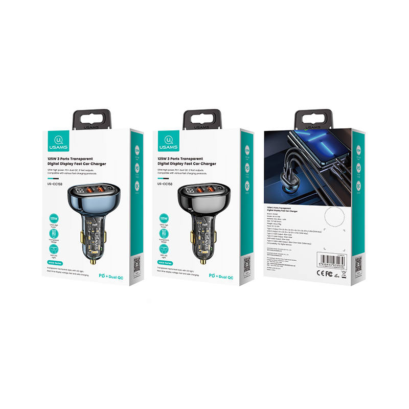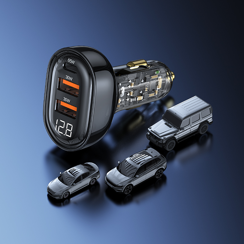 125W 3 Ports Transparent Digital Display Fast Car Charger--Icicle Series