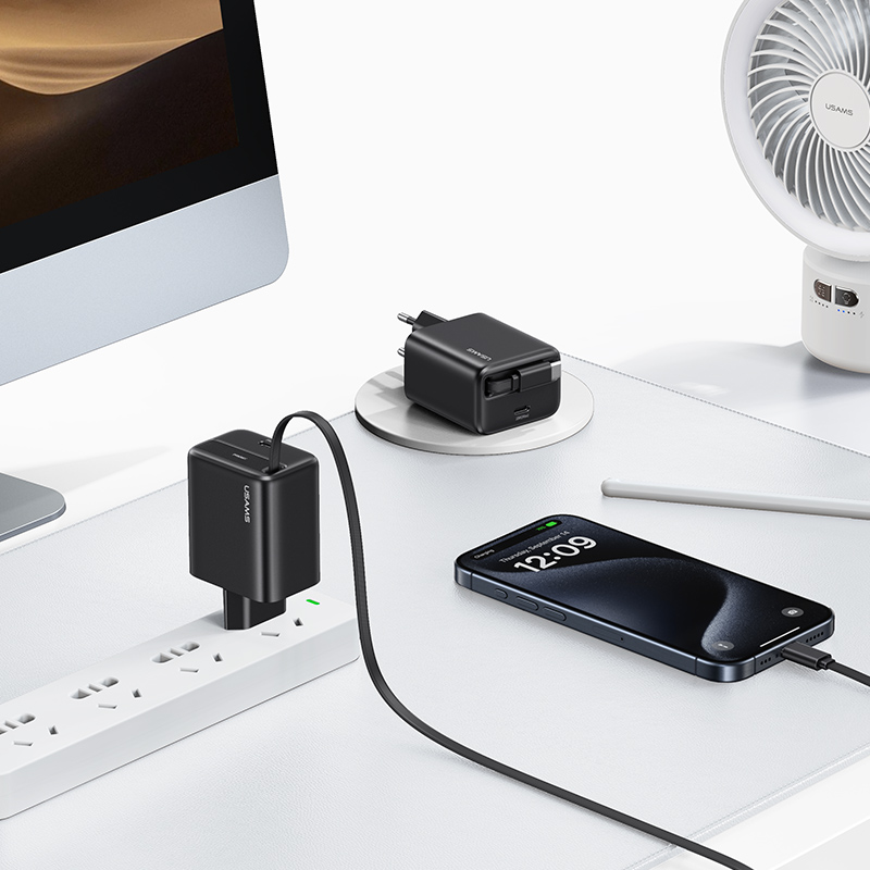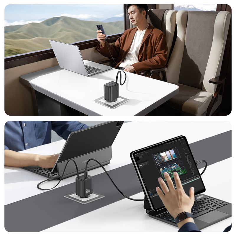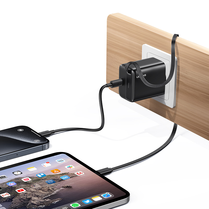 - Type-C port + retractable cable, charge 2 devices in sync.