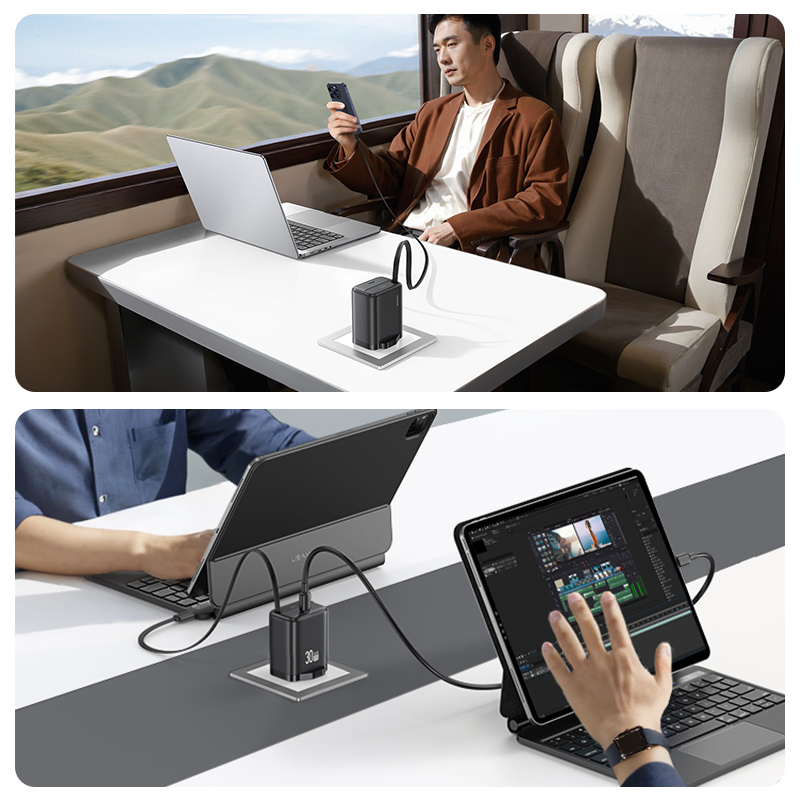 - Type-C port + retractable cable, charge 2 devices in sync.