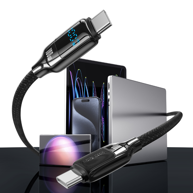 100W Digital Display Zinc Alloy Fast Charging Data Cable Type-C To Type-C - HX Series