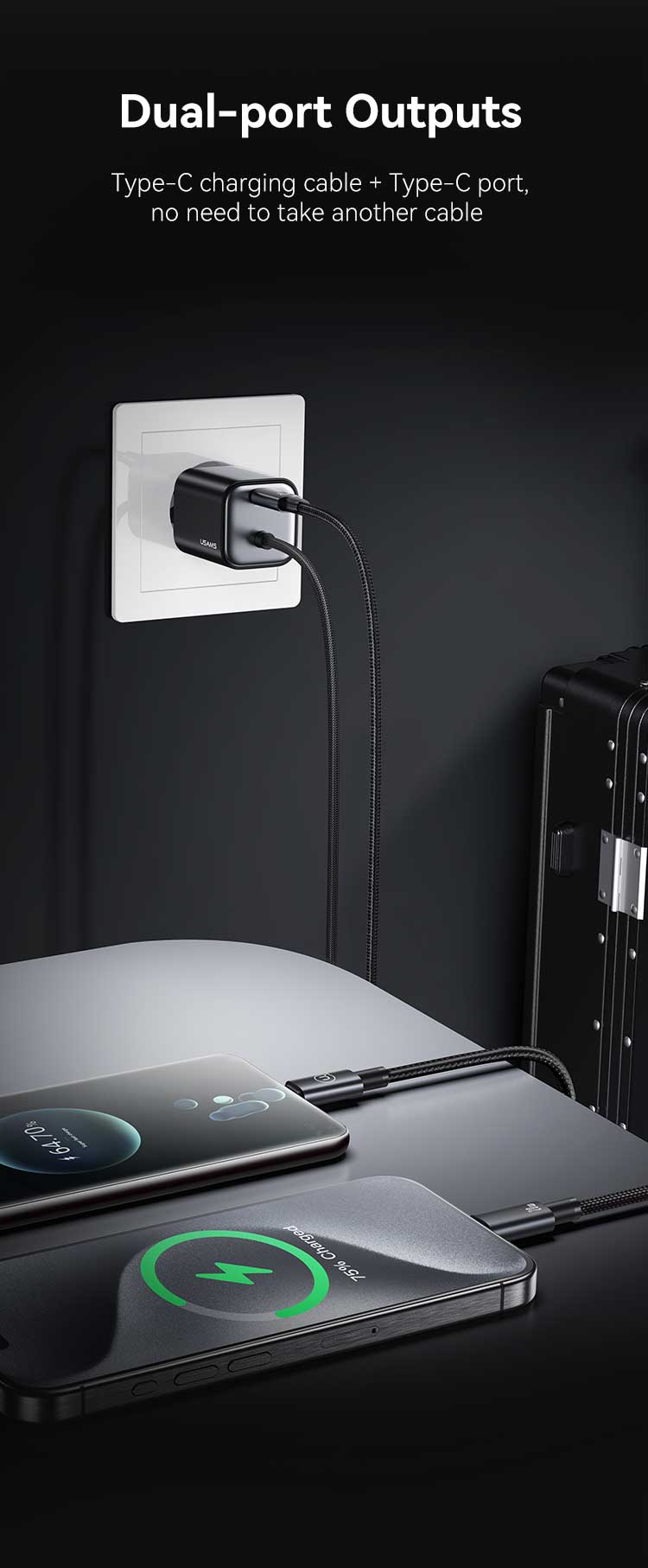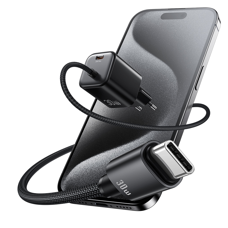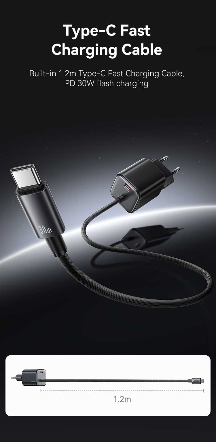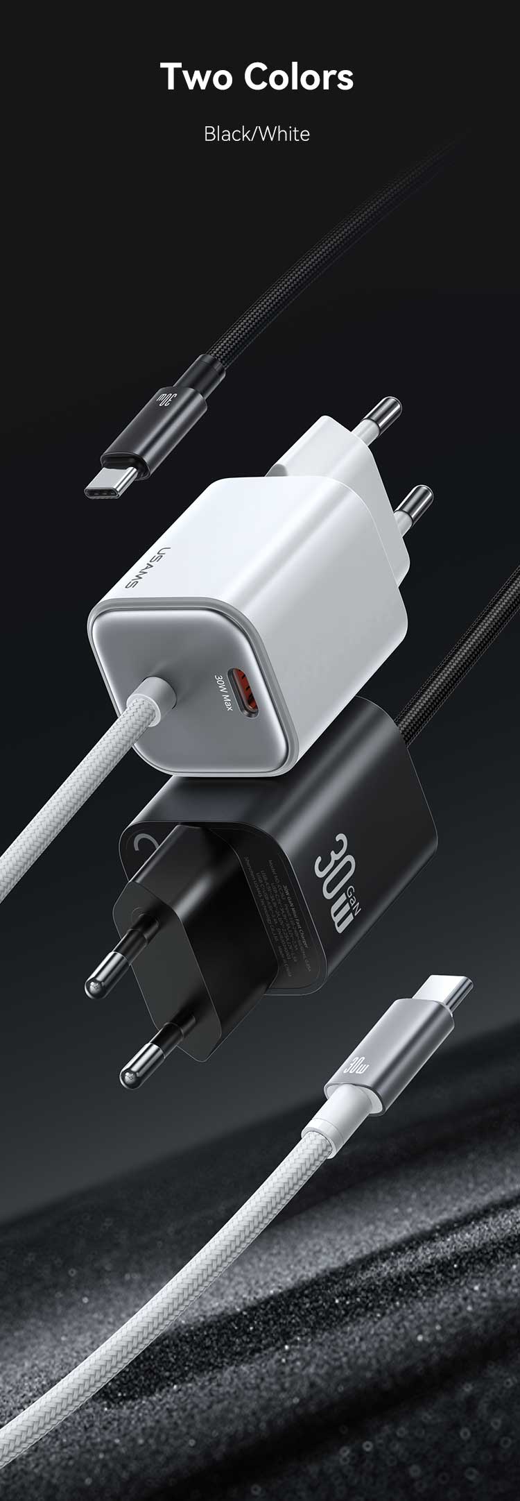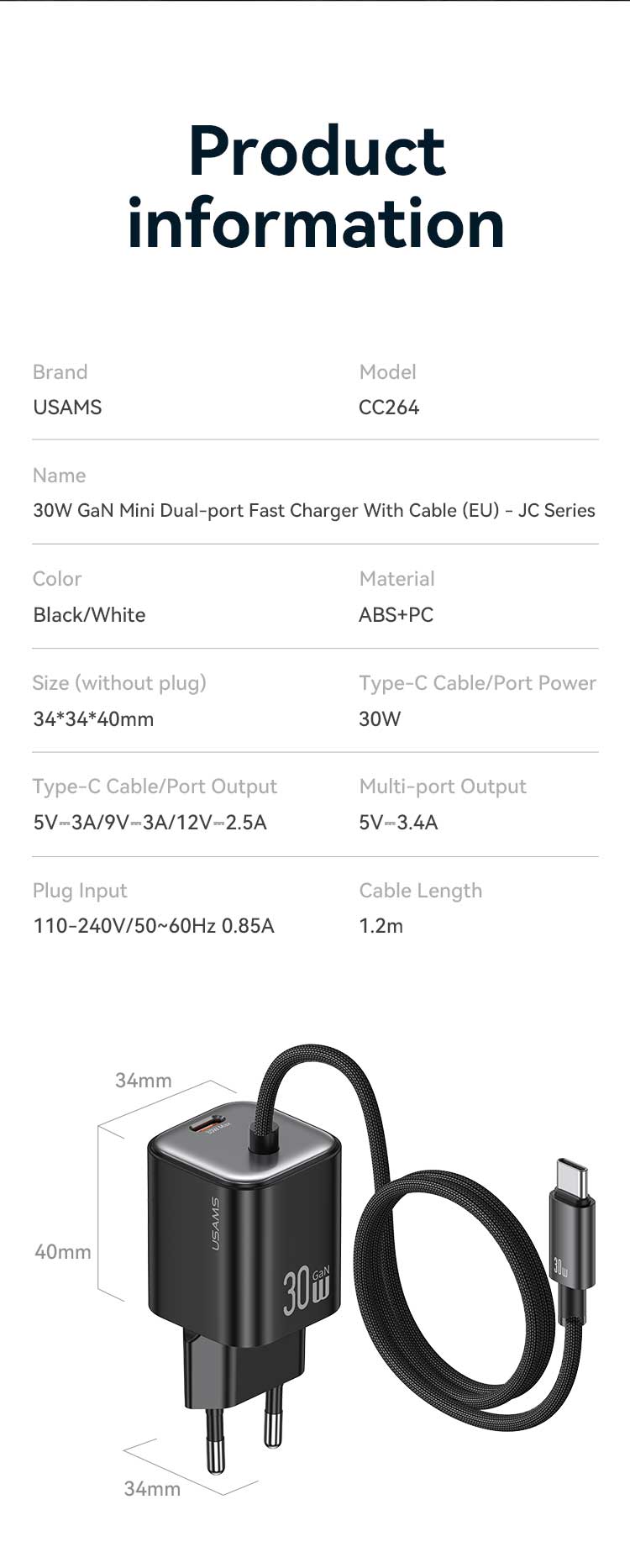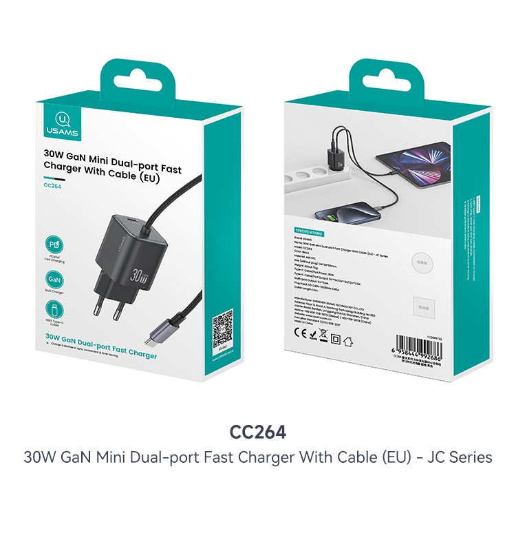 CC264 30W GaN Mini Dual-port Fast Charger With Cable (EU) - JC Series