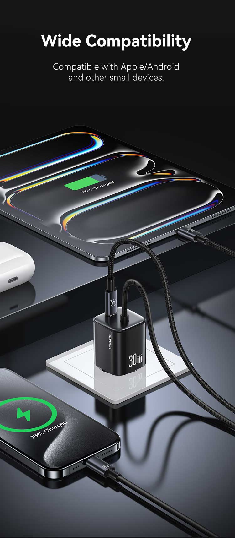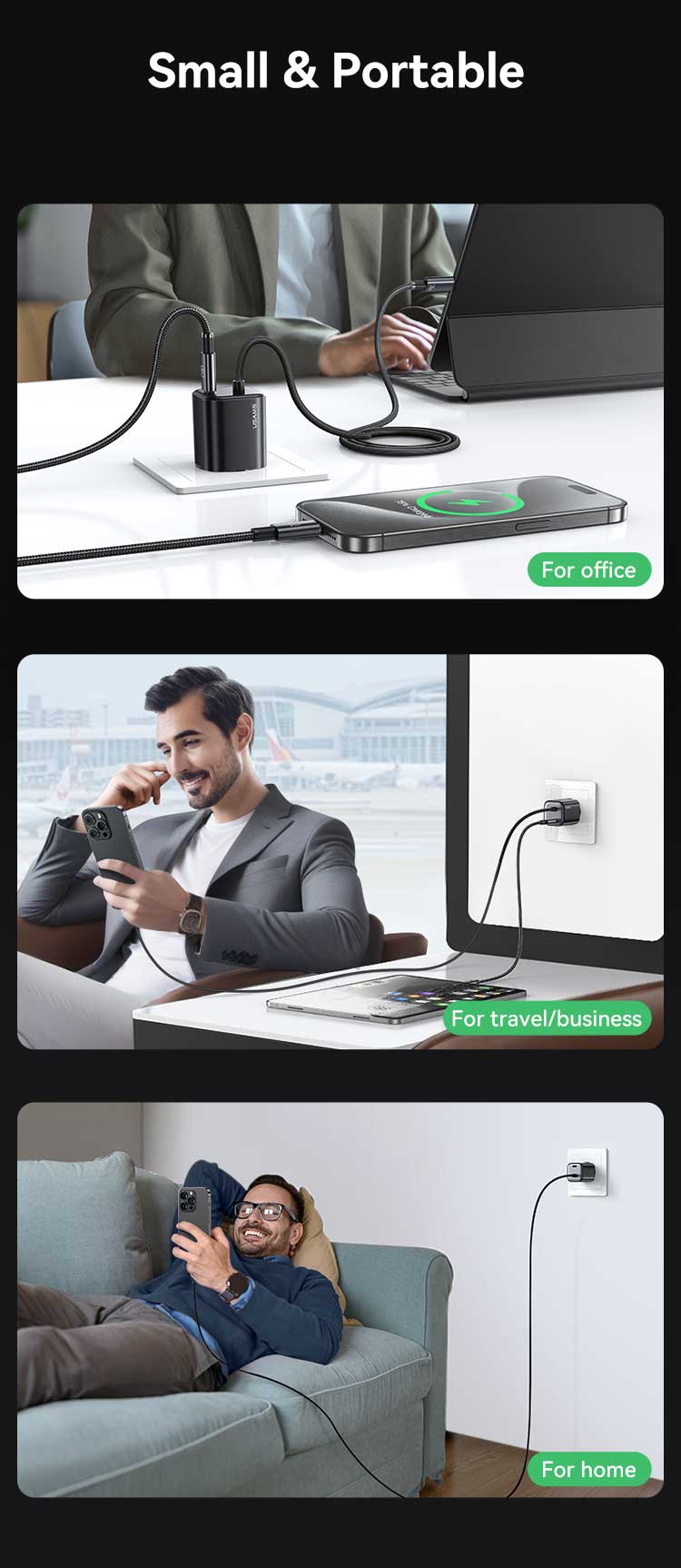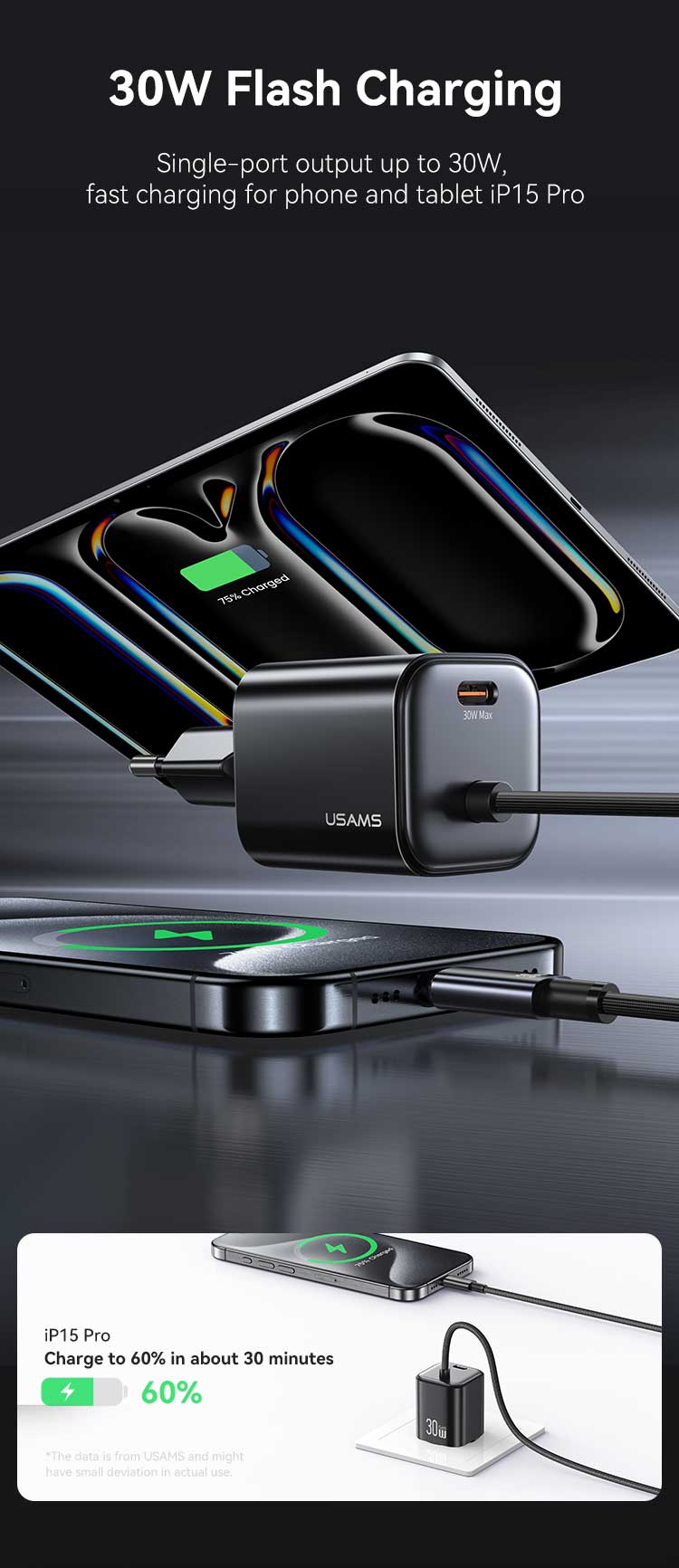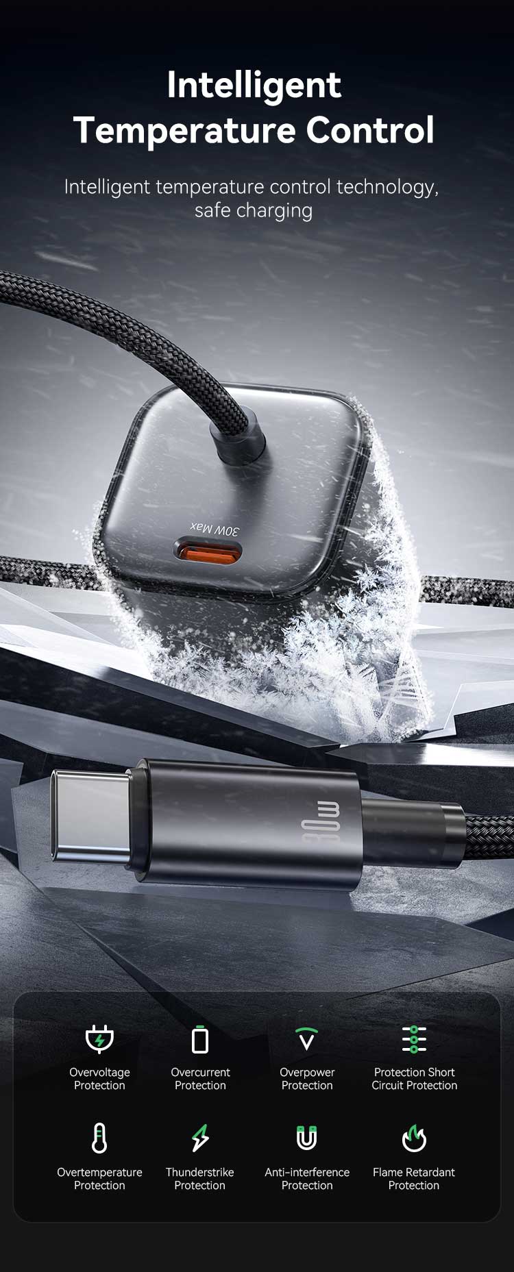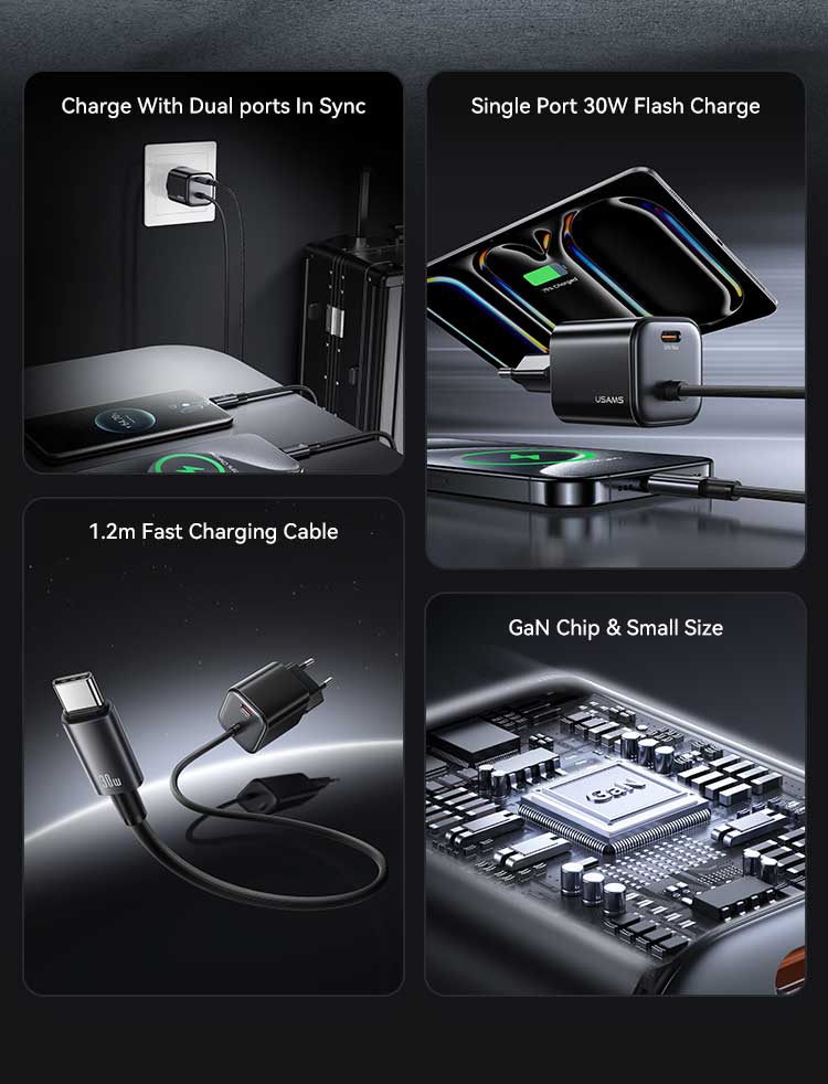 CC264 30W GaN Mini Dual-port Fast Charger With Cable (EU) - JC Series