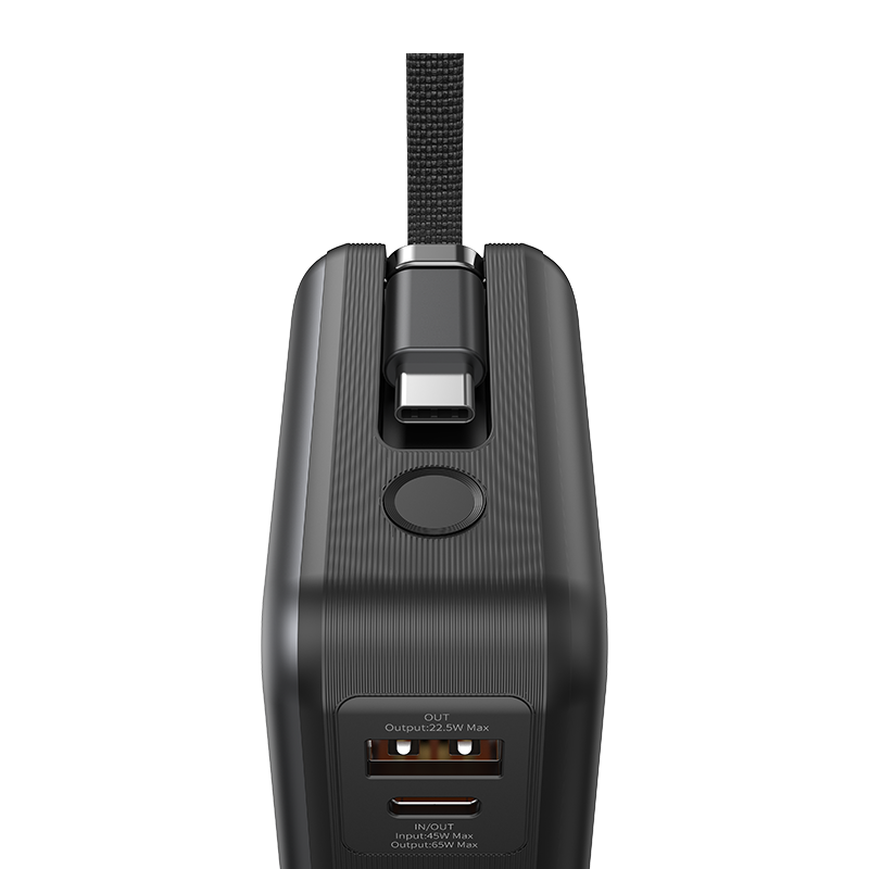 65W 3-port Fast Charging Digital Display Power Bank With Type-C Cable - XH Series