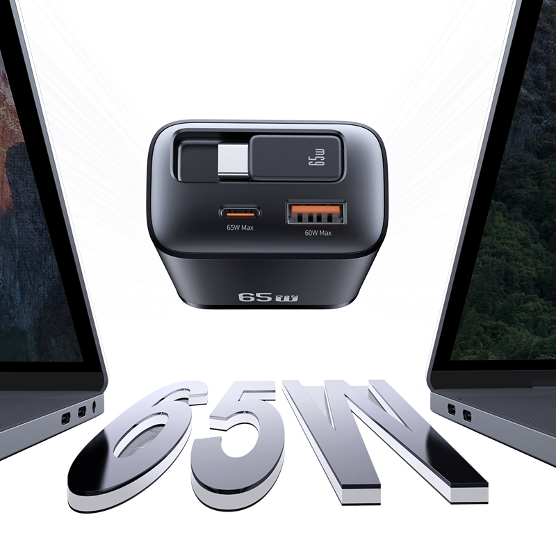65W Fast Charger With Retractable Type-C Cable (US) - Xiang Series