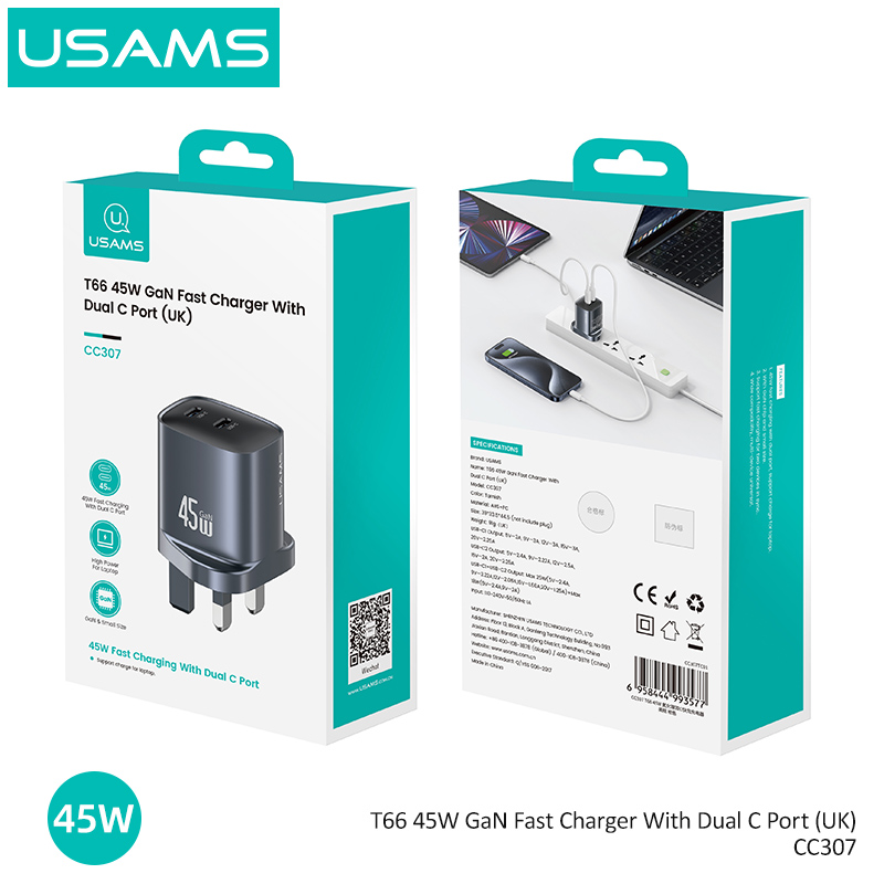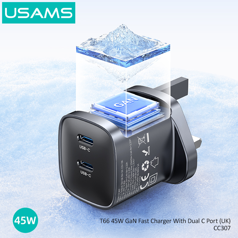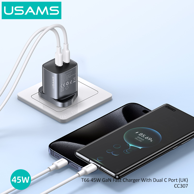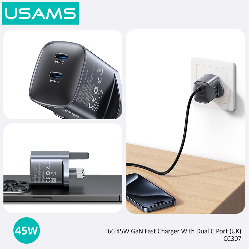 T66 45W GaN Dual-Port Fast Charger A+C UK