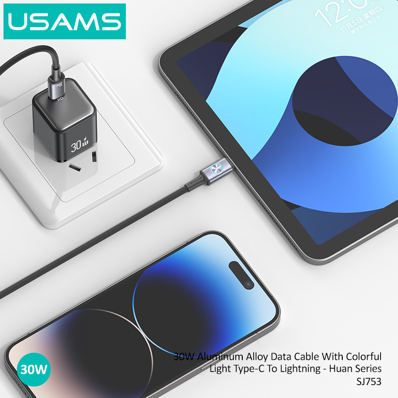 SJ753 30W Aluminum Alloy Data Cable With Colorful Light Type-C To Lightning - Huan Series