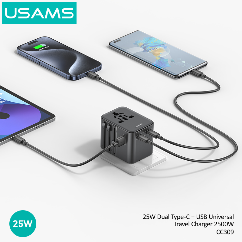 CC309 25W Dual Type-C + USB Universal Travel Charger