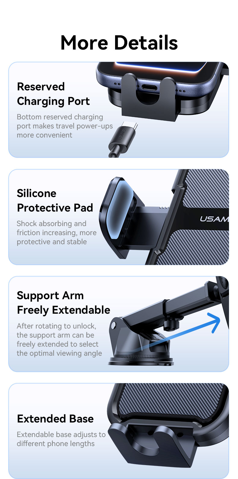 1.One-Click Release 2.Horizontal & Vertical Use3.Dual-Adhesion & Anti-Drop Design