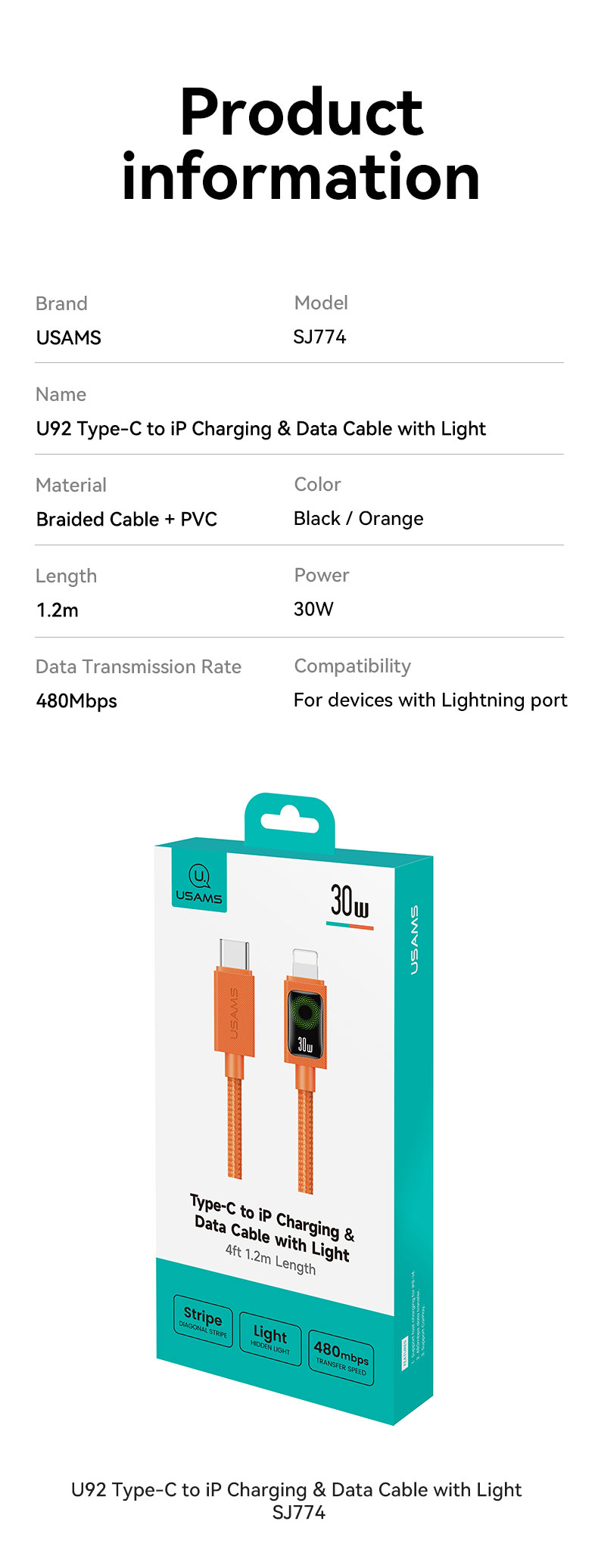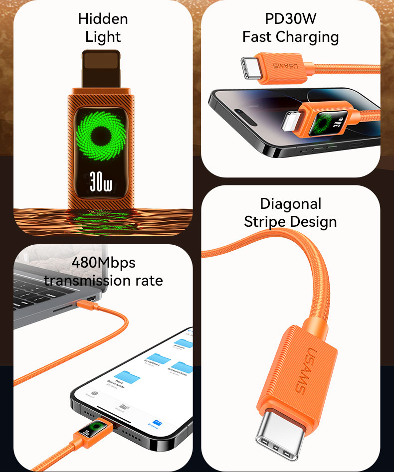 SJ772 U92 Type-C Charging & Data Cable with Light