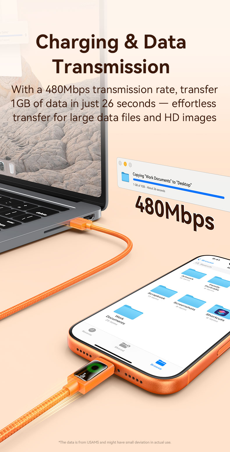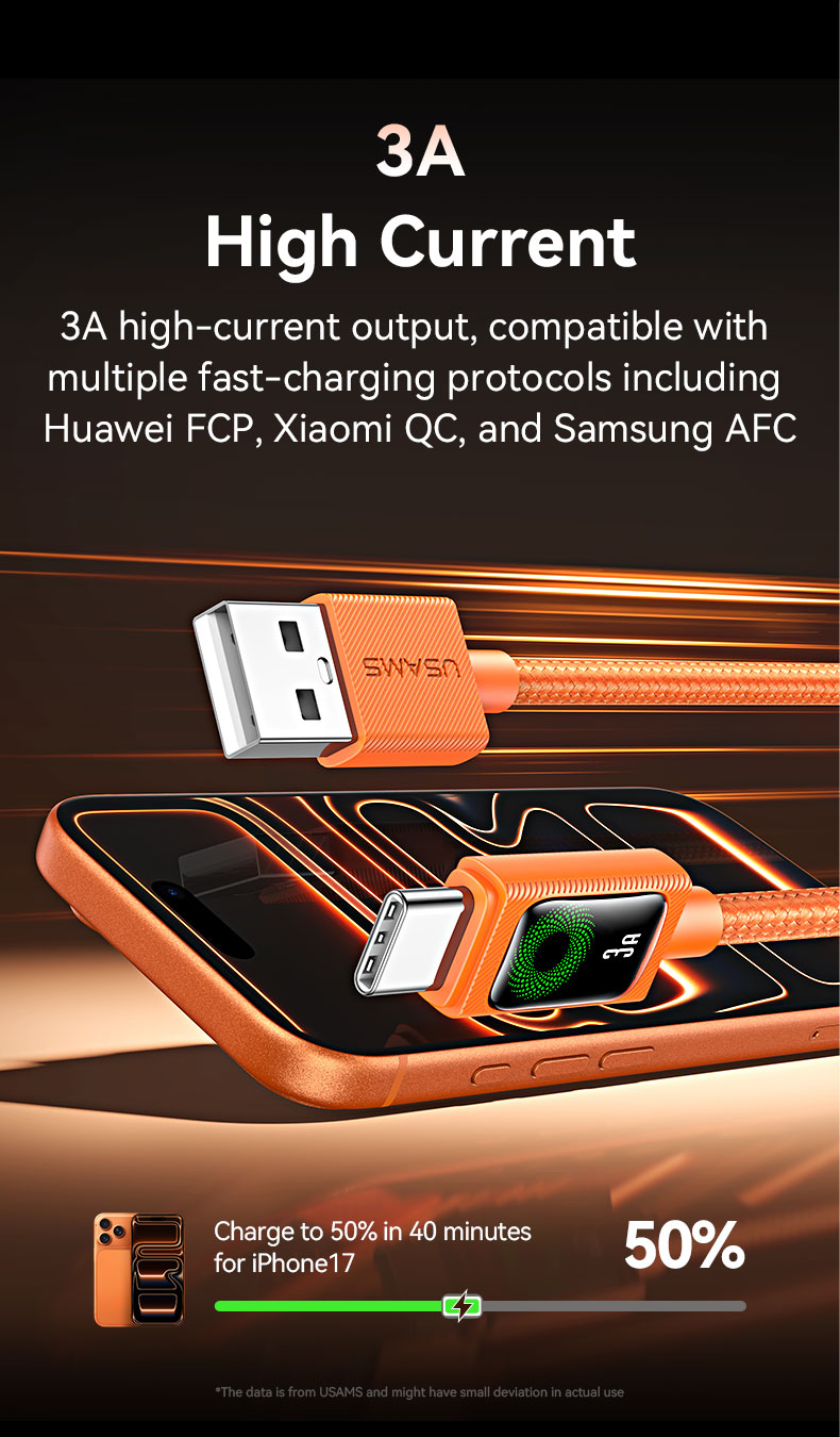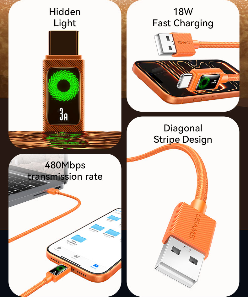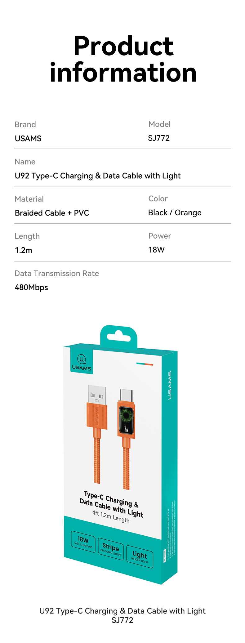 SJ772 U92 Type-C Charging & Data Cable with Light