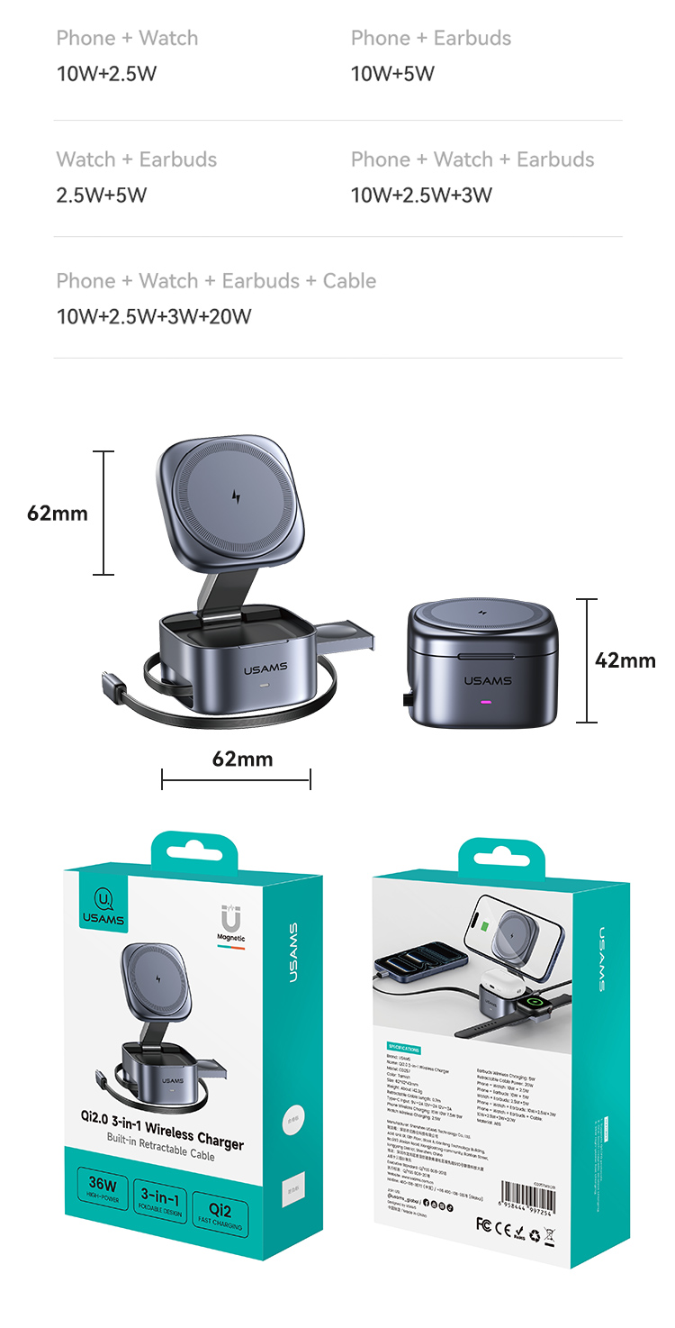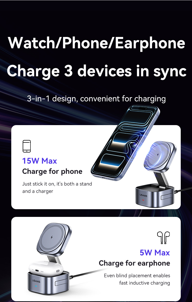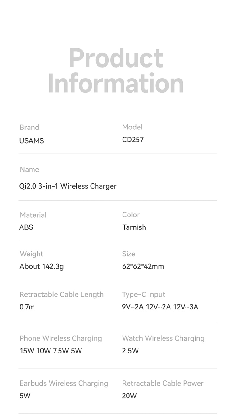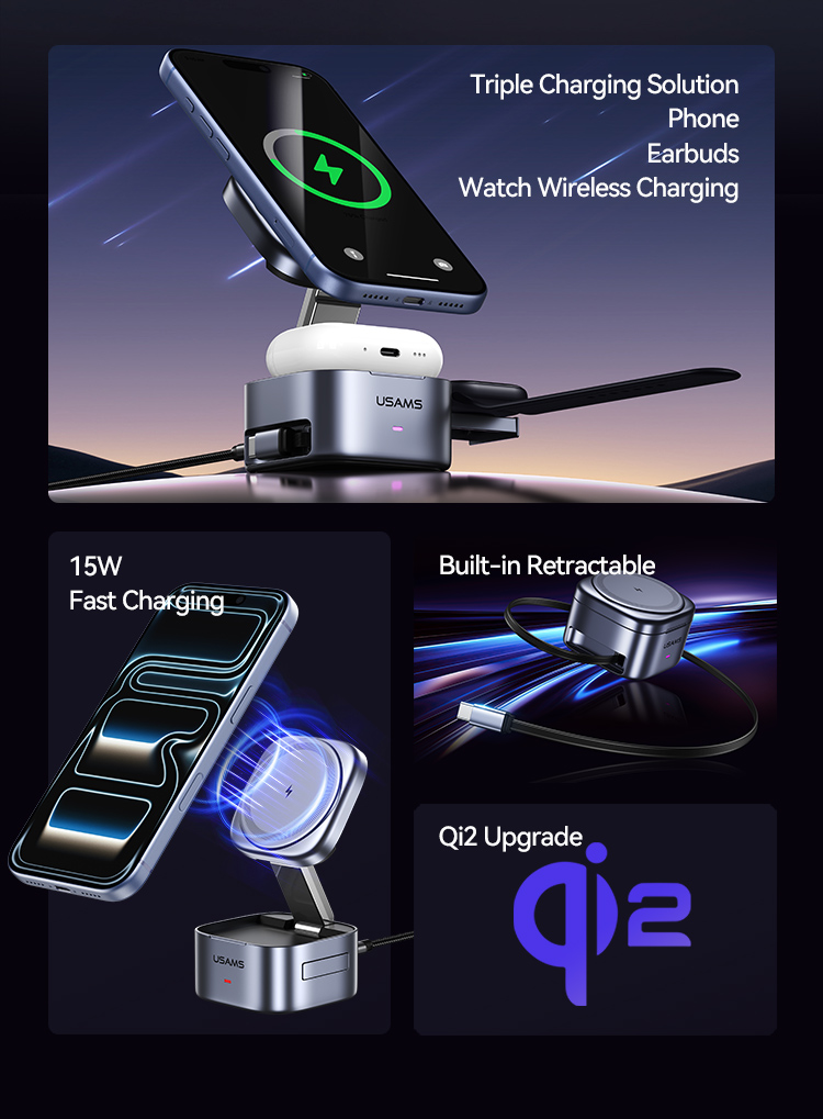 CD257 Qi2.0 3-in-1 Wireless Charger