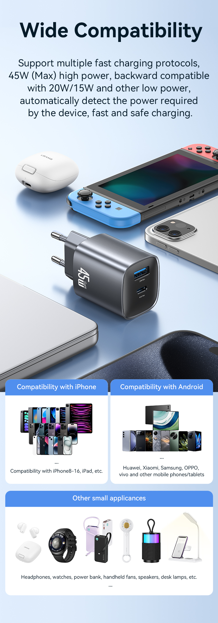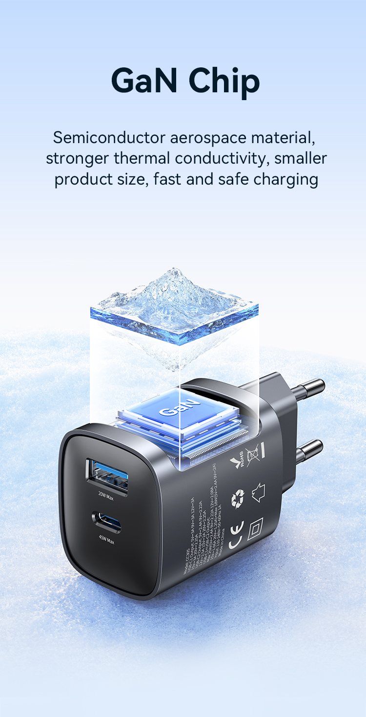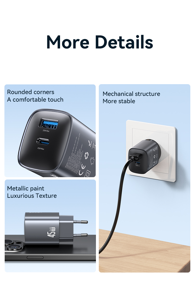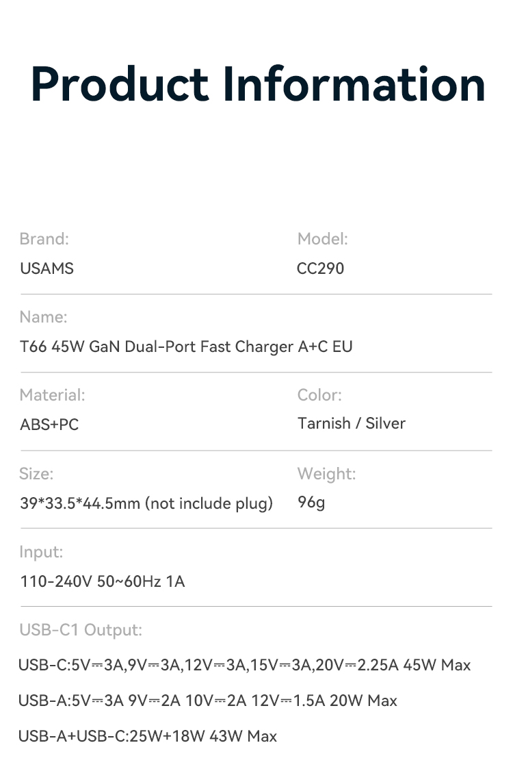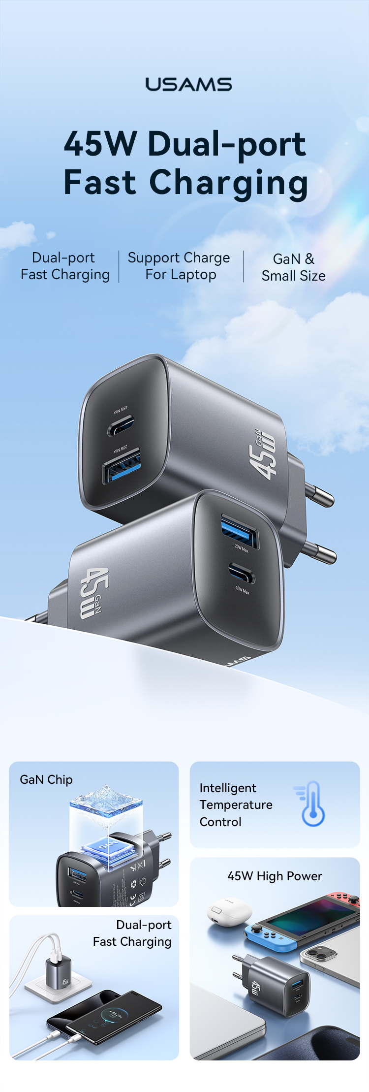 CC290 T66 45W GaN Dual-Port Fast Charger A+C EU