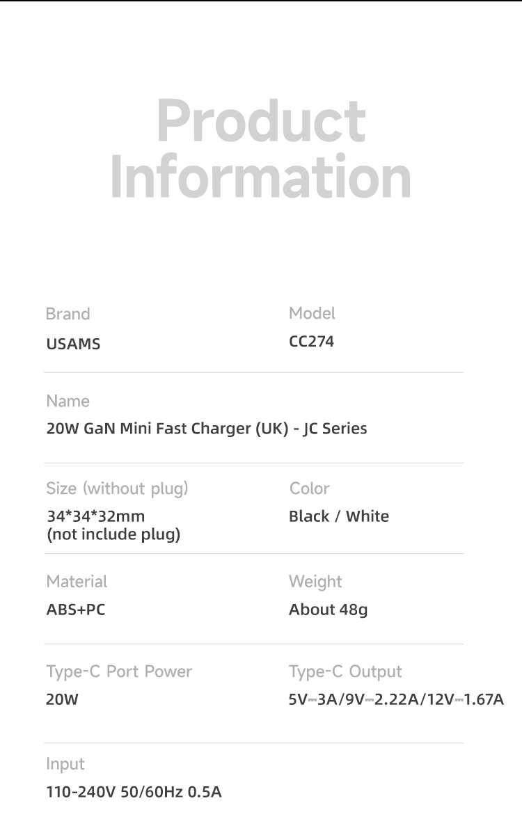 CC274 20W GaN Mini Fast Charger (UK) - JC Series