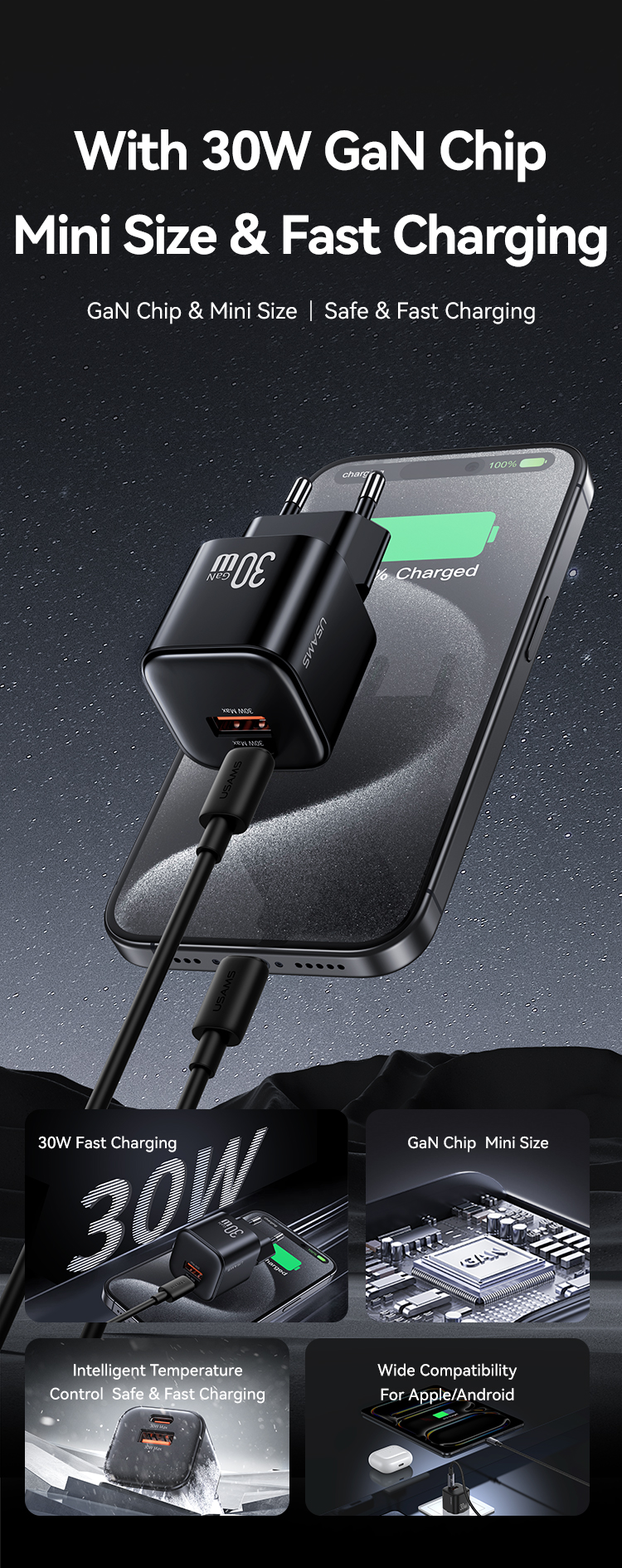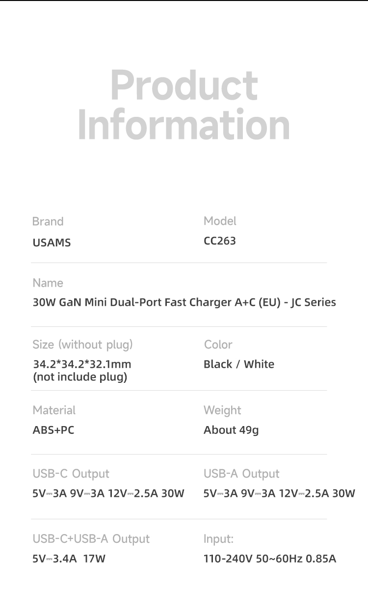 CC263 30W GaN Mini Dual-Port Fast Charger A+C (EU) - JC Series