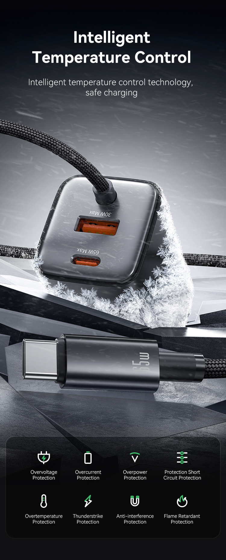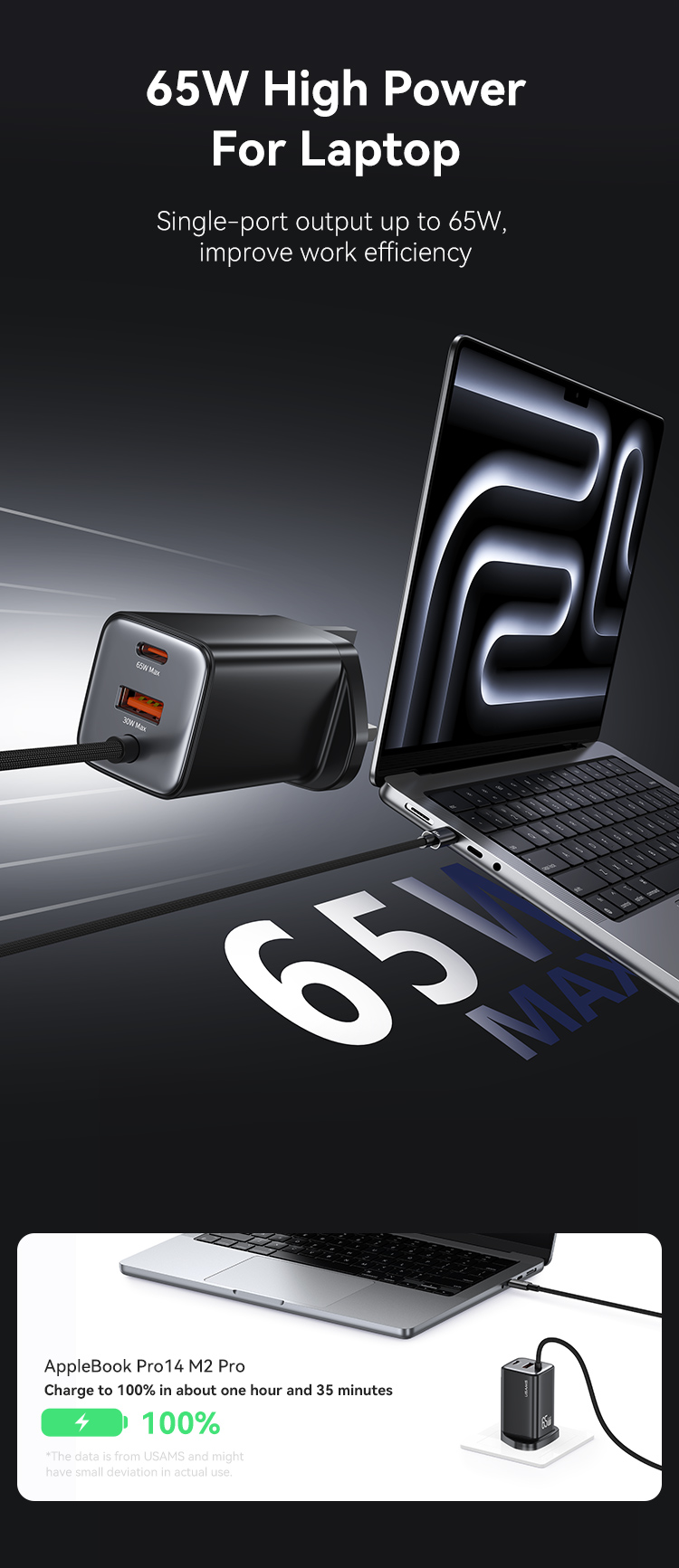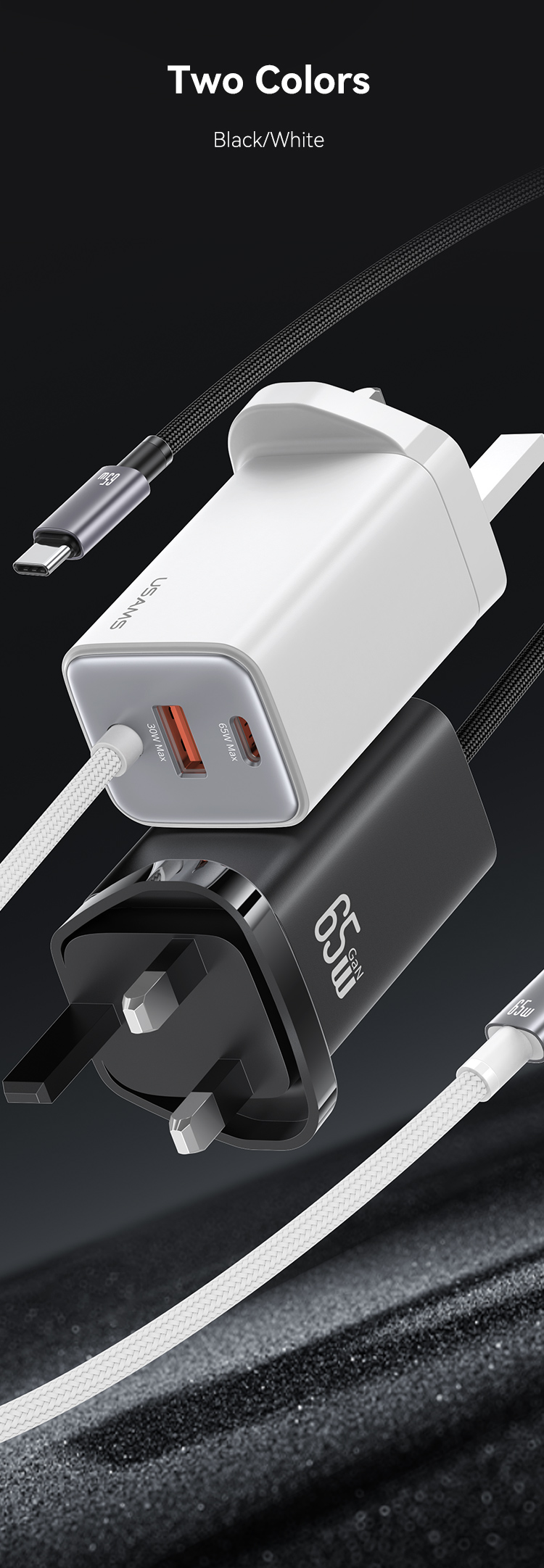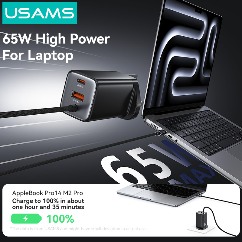 CC280 65W GaN ACC 3 Ports Fast Charger With Cable (UK) -JC series