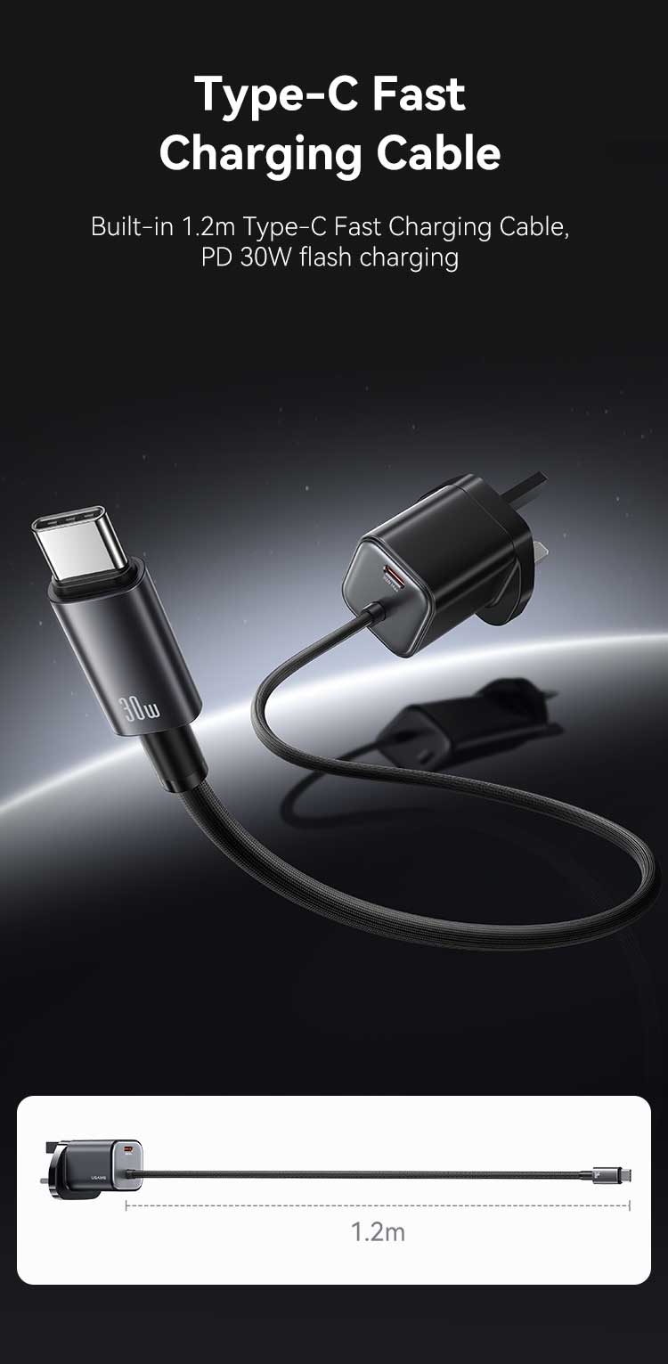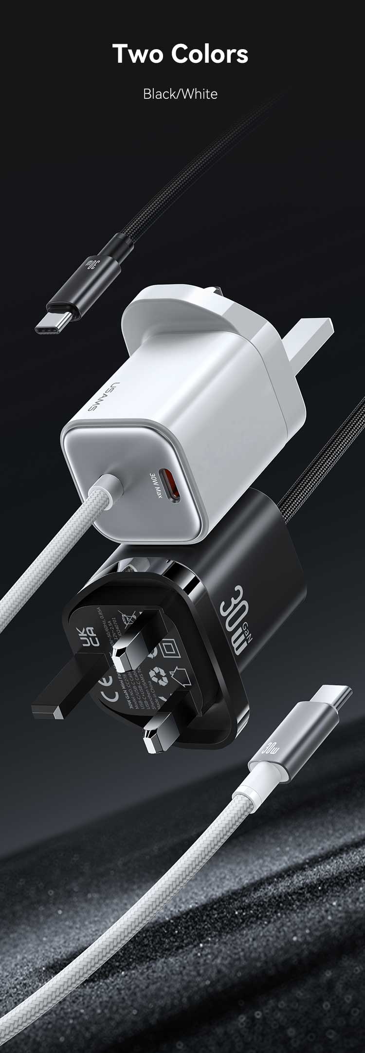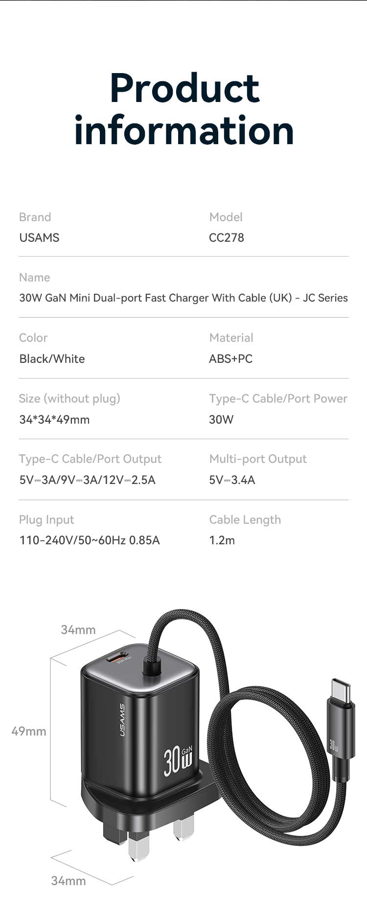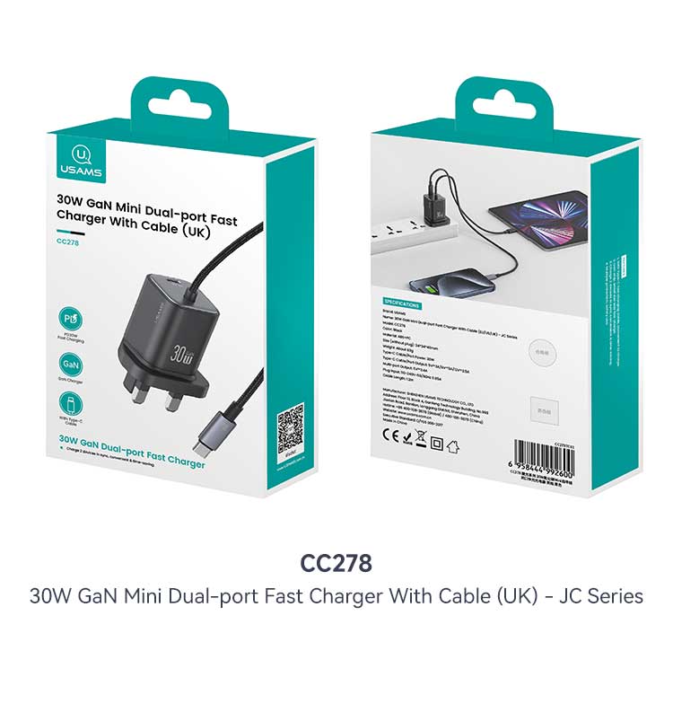 CC278 30W GaN Mini Dual-port Fast Charger With Cable (UK) - JC Series