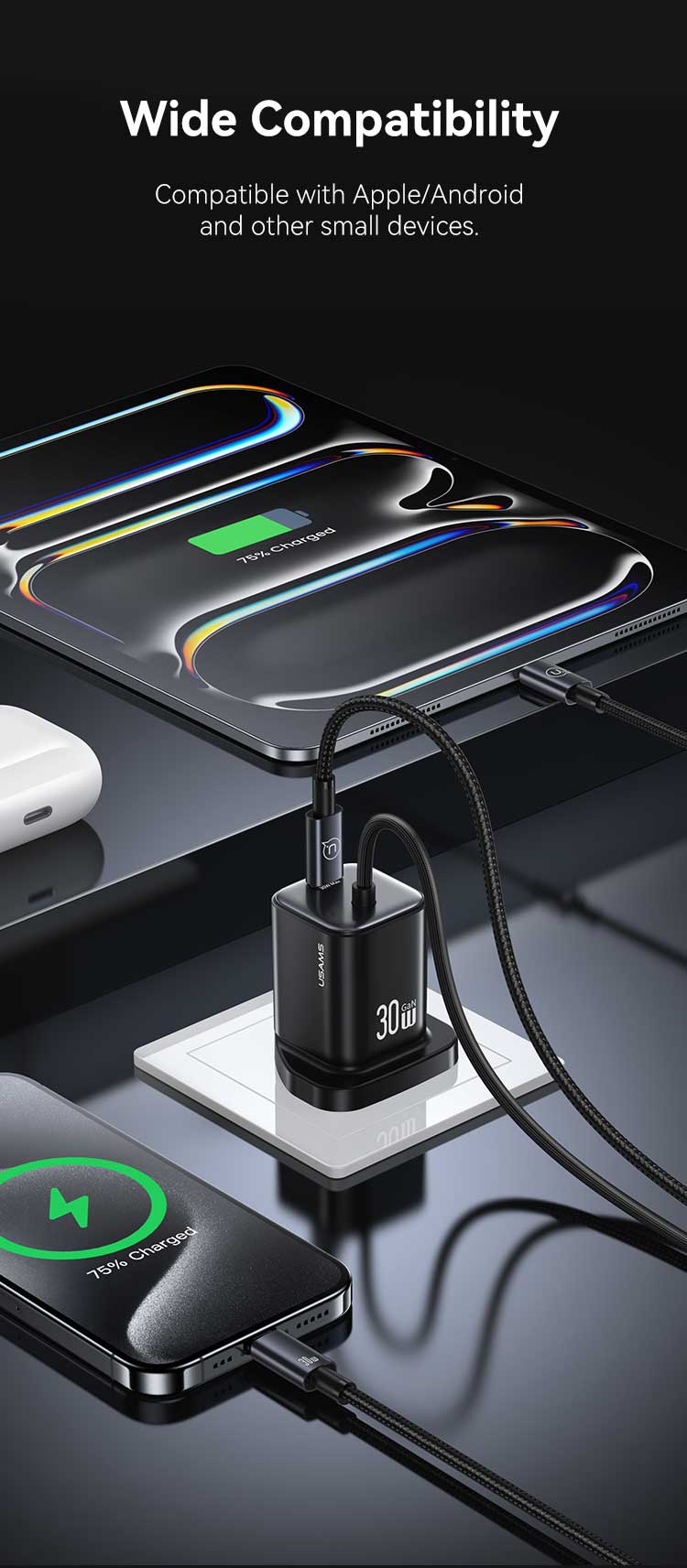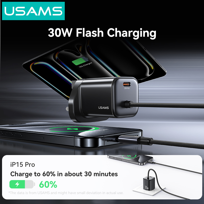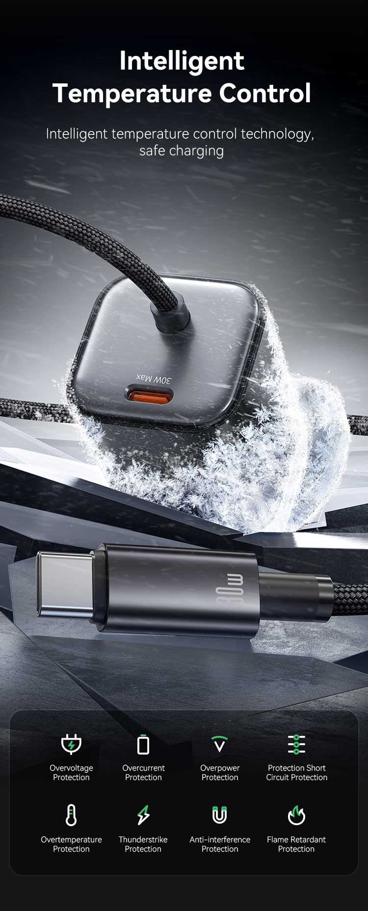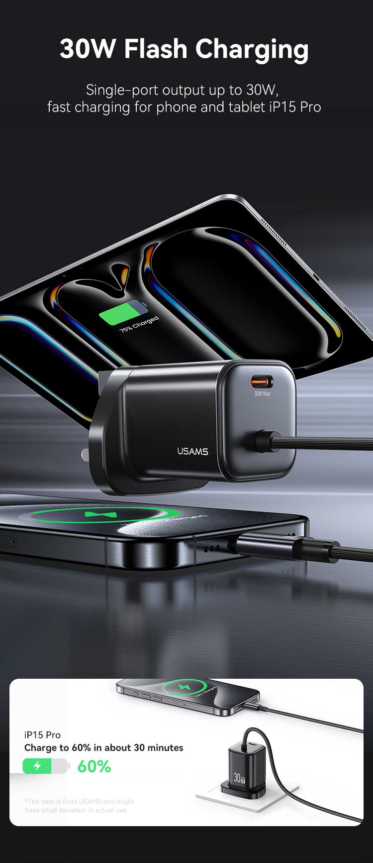 CC278 30W GaN Mini Dual-port Fast Charger With Cable (UK) - JC Series