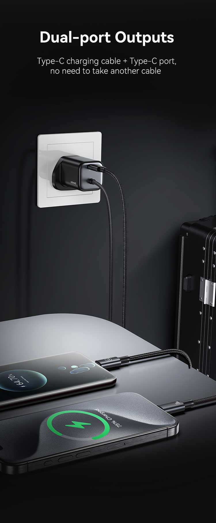 CC275 20W GaN Mini Dual-port Fast Charger With Cable (UK) - JC Series