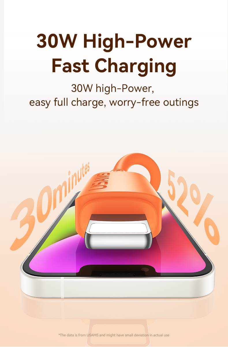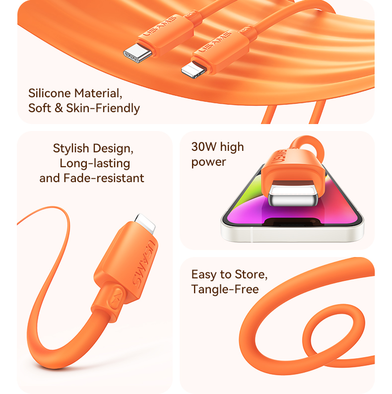 1.Silicone Material, Soft & Skin-Friendly2.30W Fast Charging3.Easy Storage, Tangle-Free