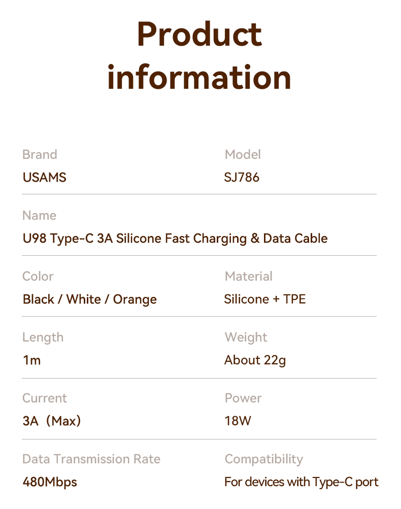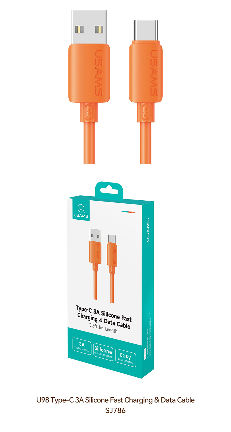 SJ786 U98 Type-C 3A Silicone Fast Charging & Data Cable