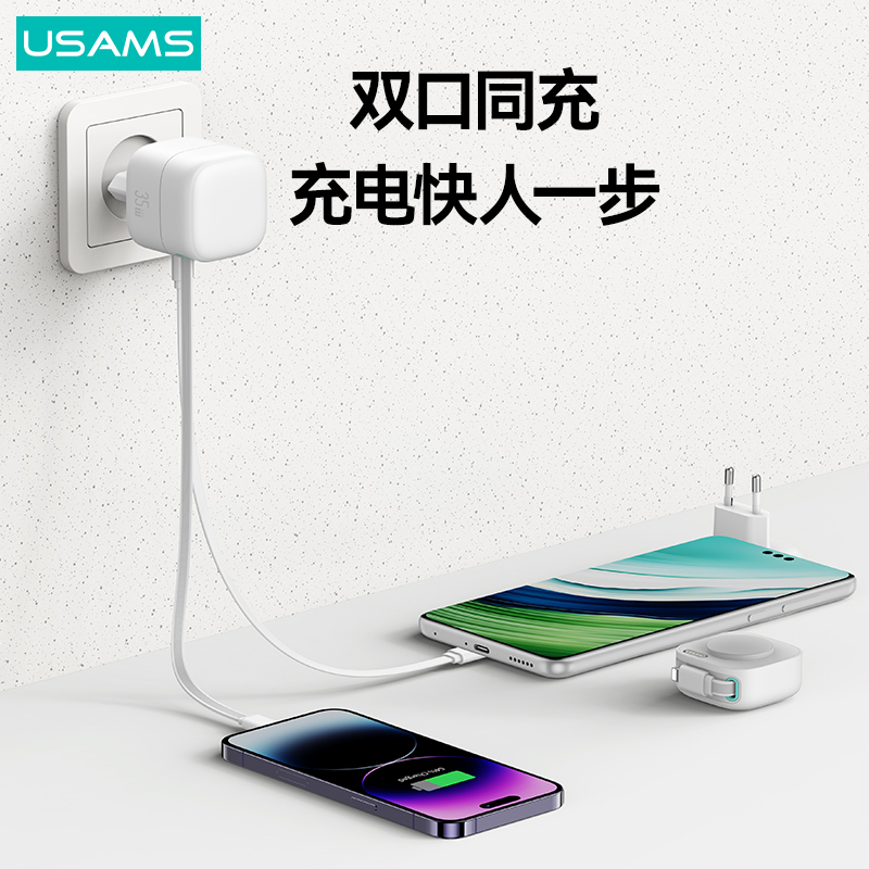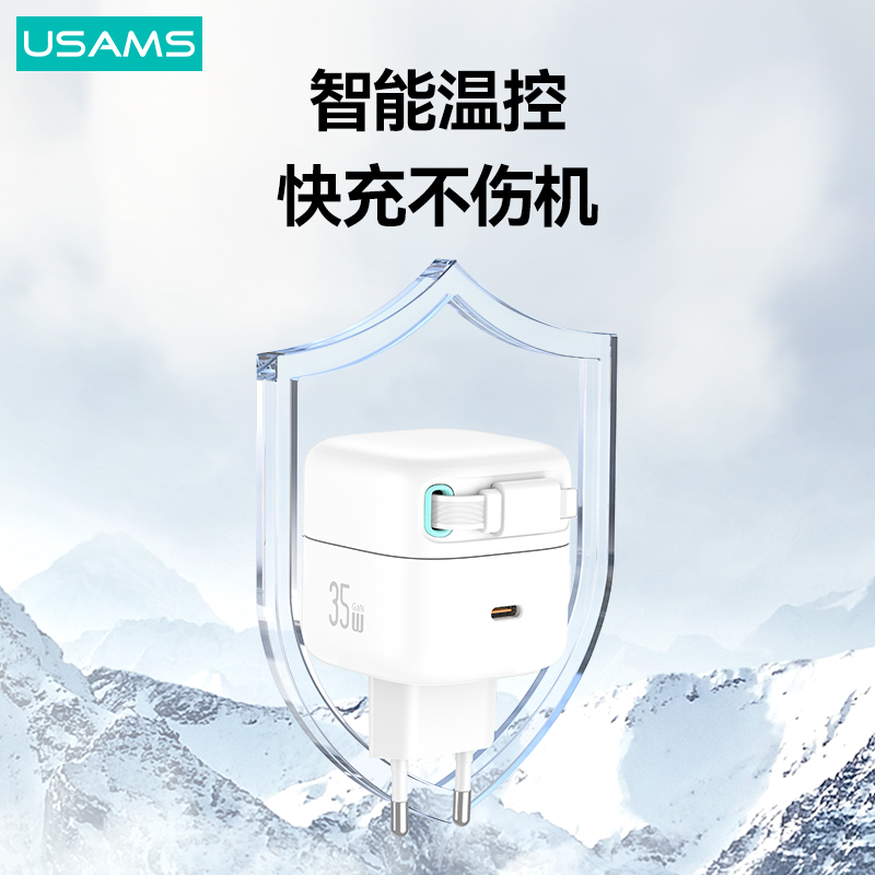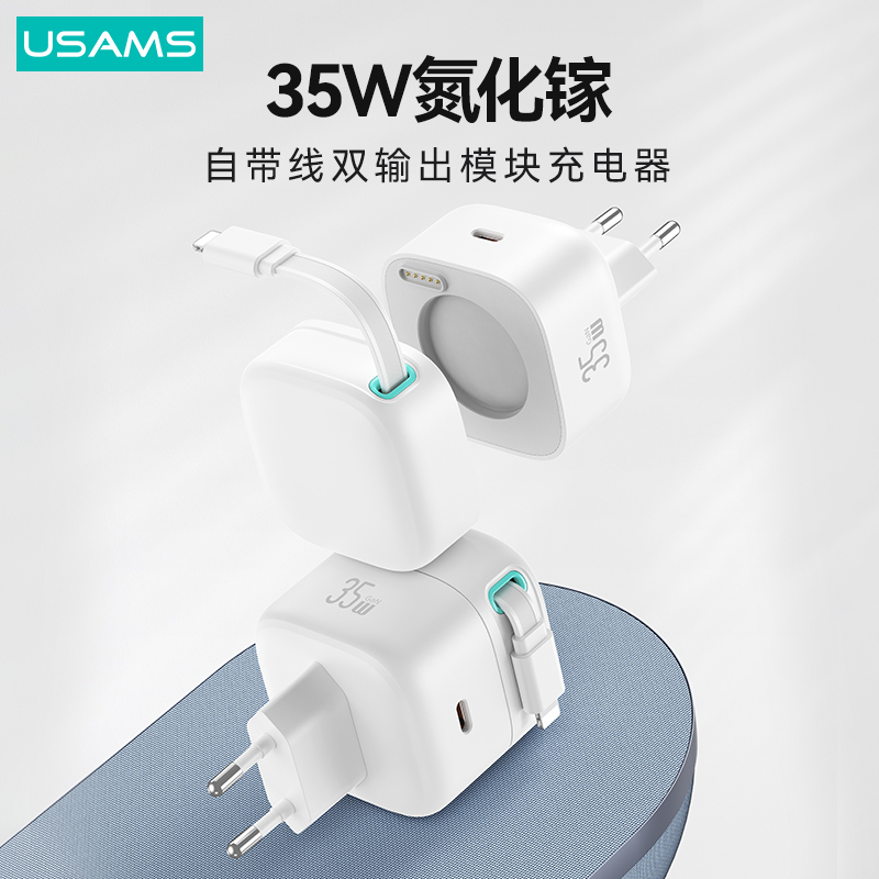 PD35W氮化镓多功能双输出Lightning磁吸收纳线充电器 星魔方系列 欧规