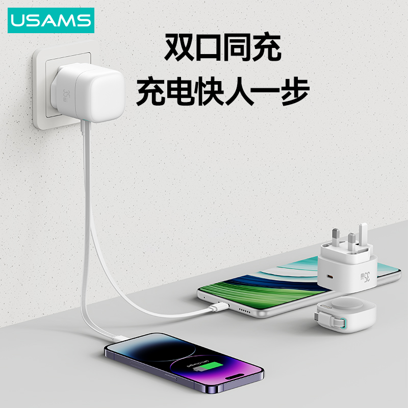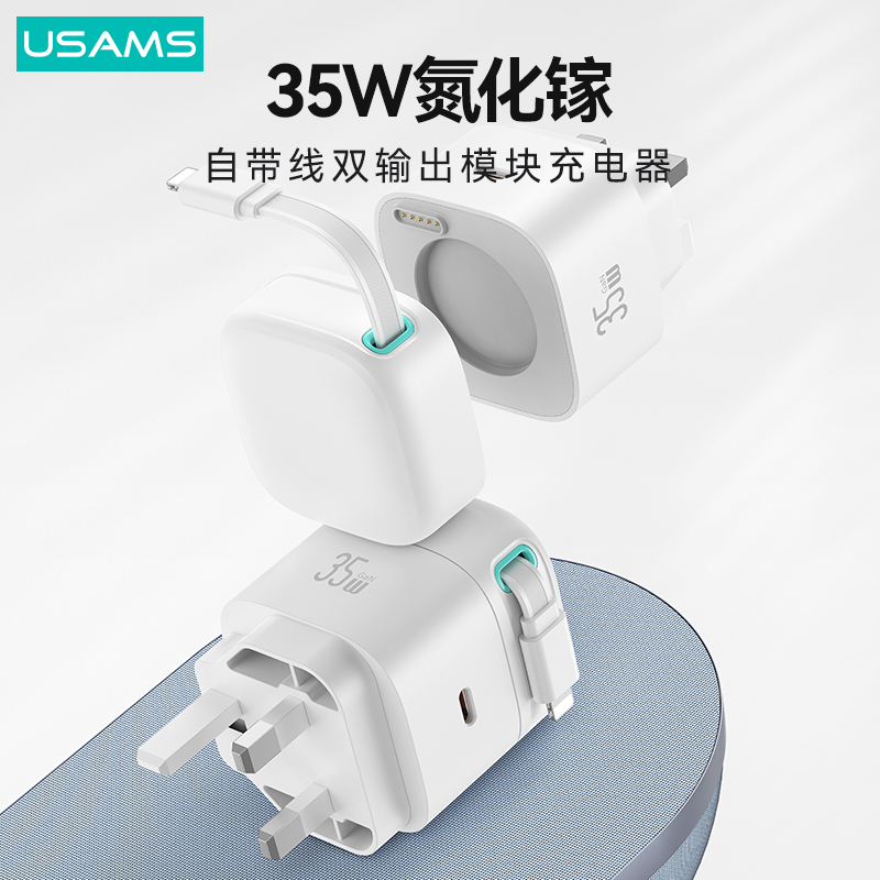 PD35W氮化镓多功能双输出Lightning磁吸收纳线充电器 星魔方系列 英规