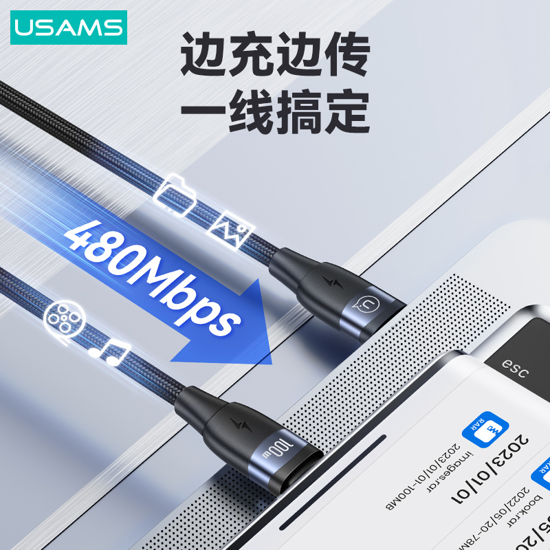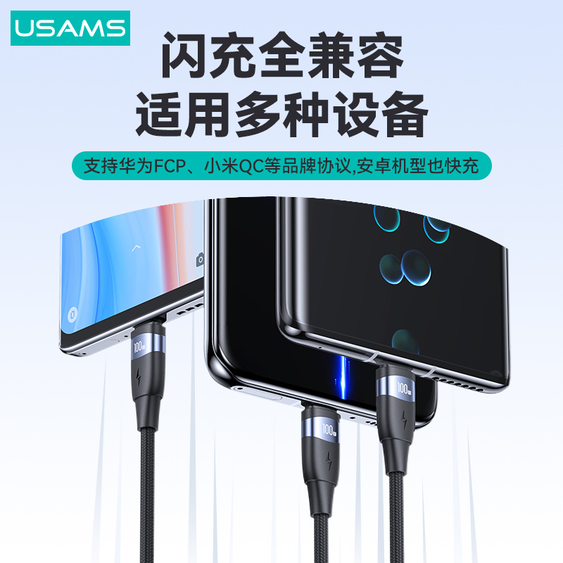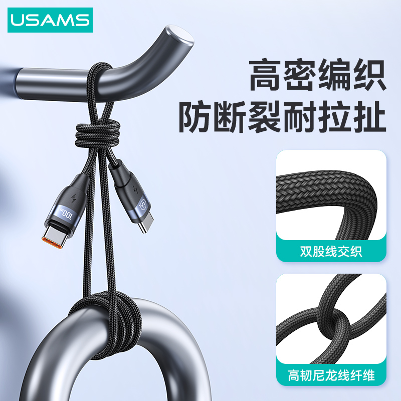 产品特点:① 100W大功率,快充笔记本/平板/手机② 充电+数据传输,功能二合一③ 强韧尼龙编织线,魔术贴方便收纳