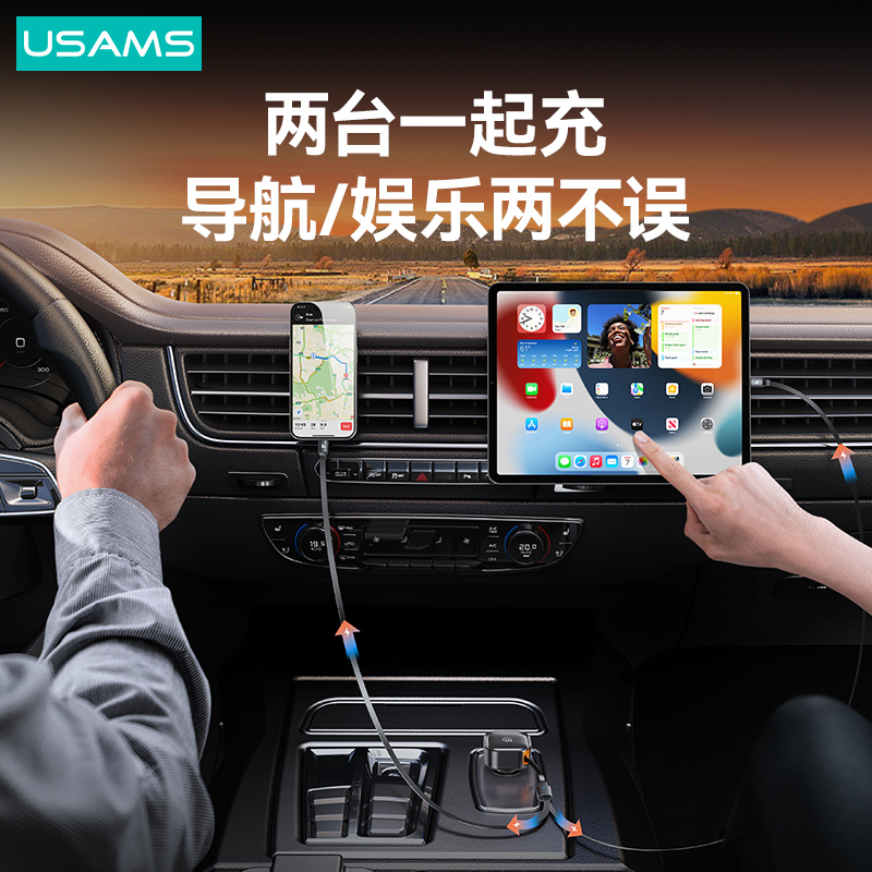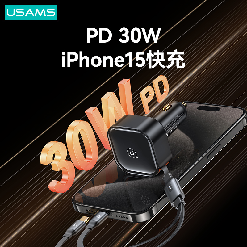 C41 30W一拖二伸缩线车充Type-C+Type-C