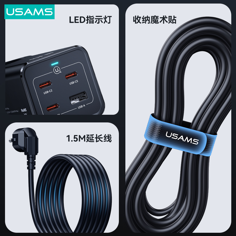 67W 四口快充适配器3C+1U延长线插座 2200W