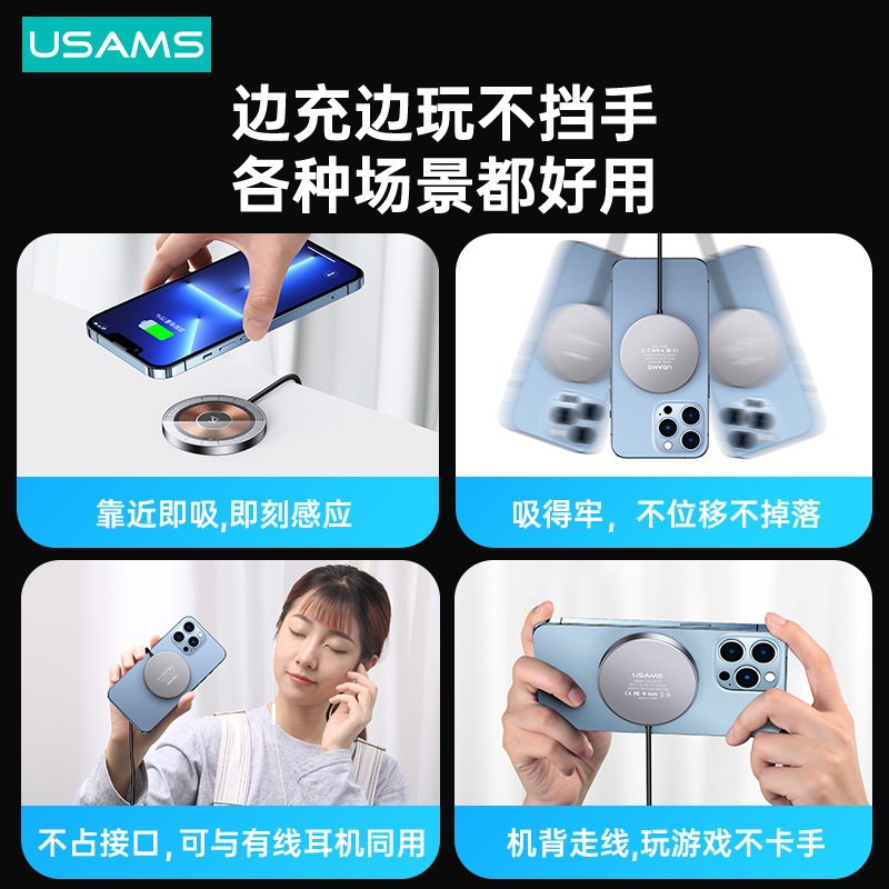 ① 强磁精准吸附,手机一吸即充