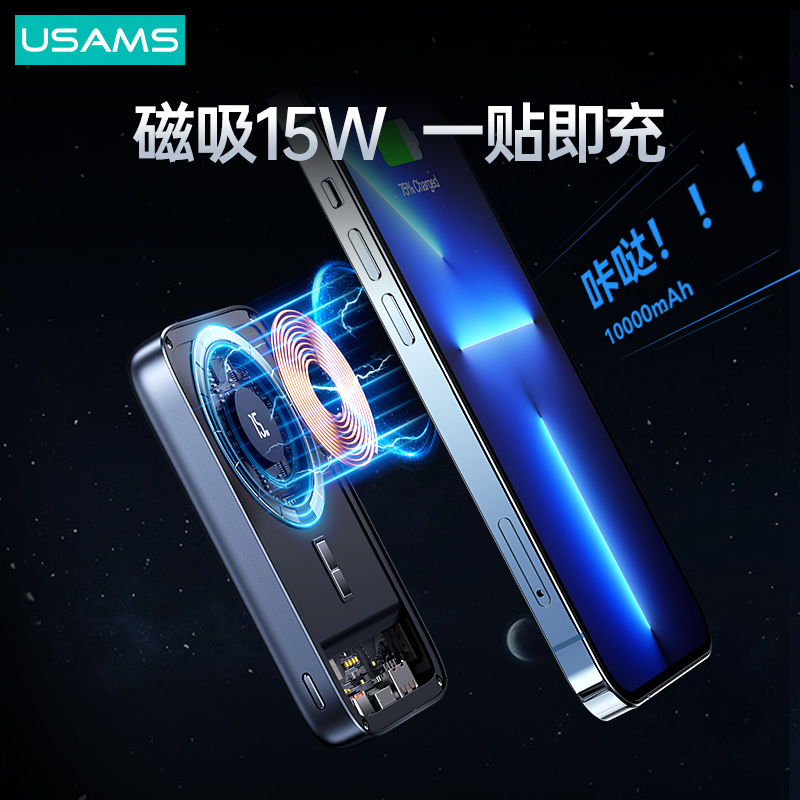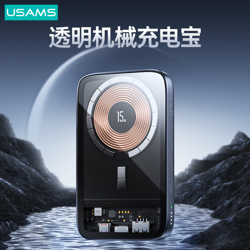 PB67 PD20W+QC3.0铝合金透明15W磁吸无线充移动电源