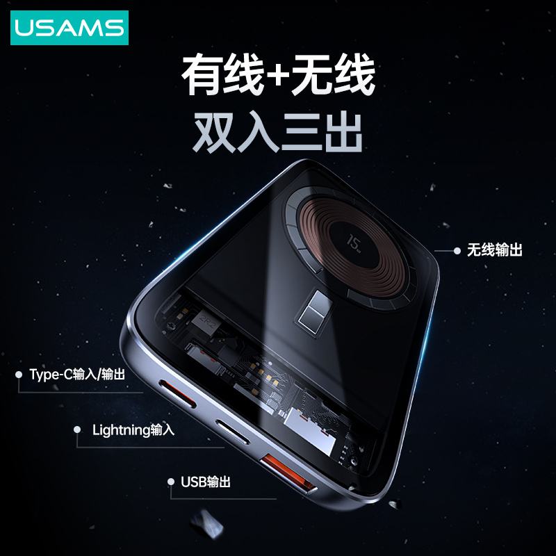 ① 双入三出,有线+无线两种充电方式