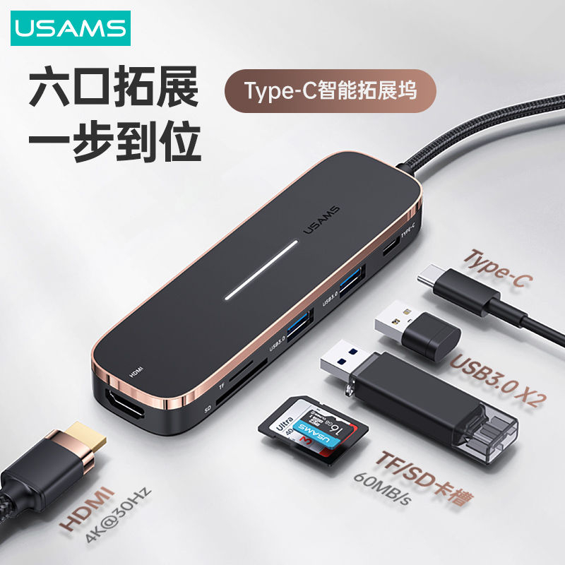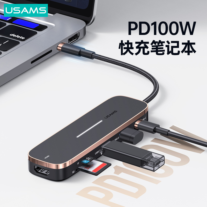 Type-C To USB3.0*2+PD100W+TF+SD+HDMI六合一拓展坞