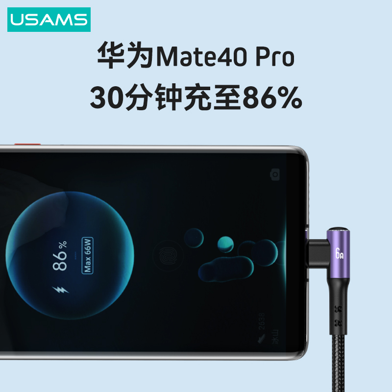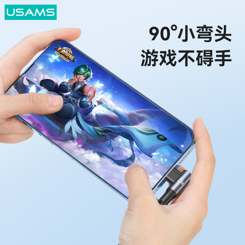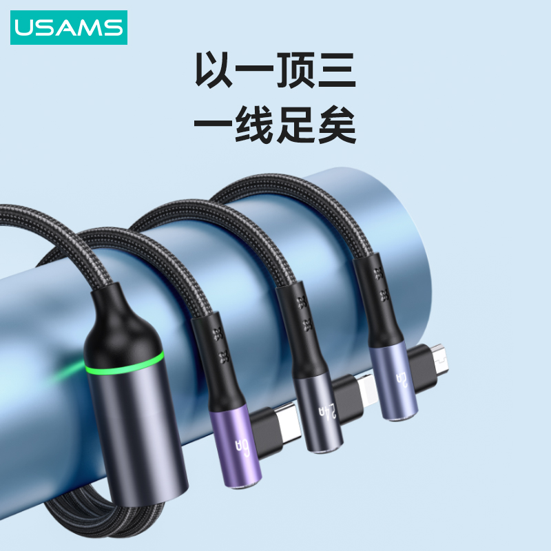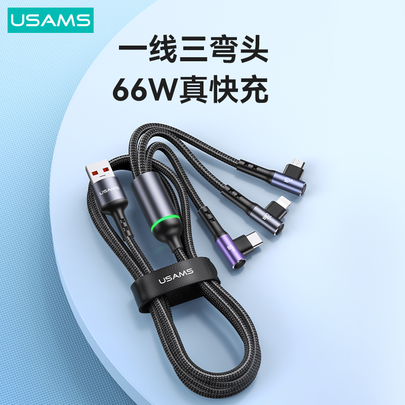 U80 1拖3 USB TO C+L+M 66W全兼容快充铝合金弯头数据线