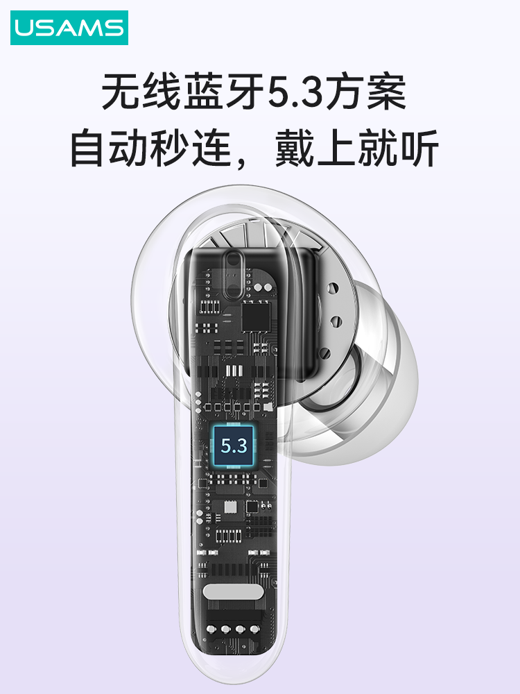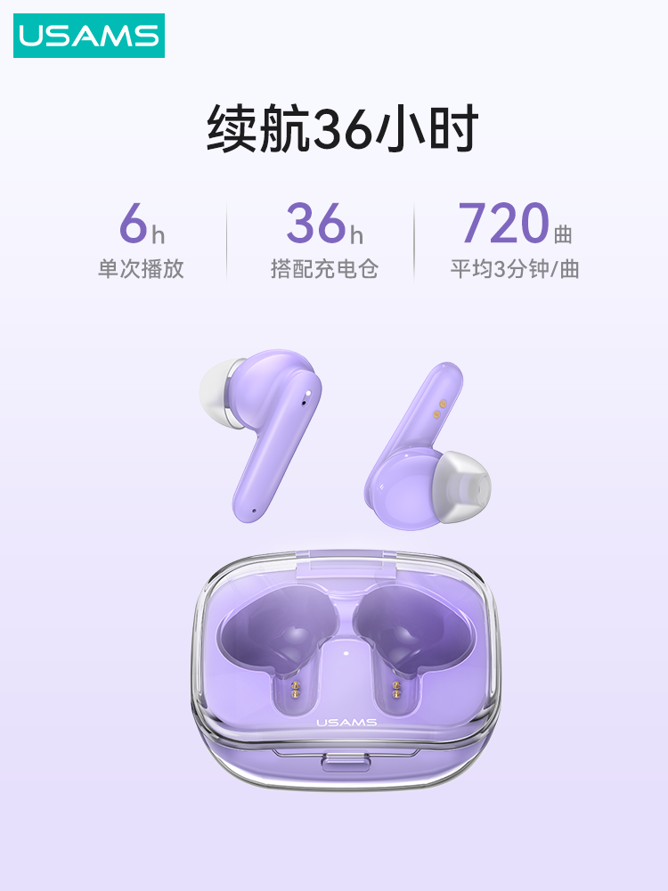 产品特点:① 晶莹璀璨透明壳,夏日缤纷色系② 支持立体声效,高清麦克风通话③ 升级蓝牙5.3方案,灵敏指纹触控④ 单次续航6小时,复合续航36小时