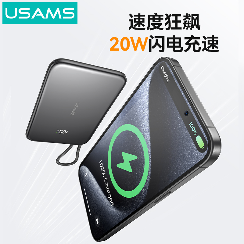 星界系列 20W超薄磁吸数显移动电源Type-C线