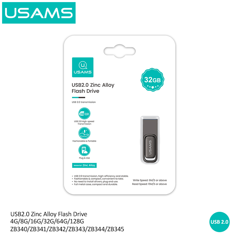 ZB340/ZB341/ZB342/ZB343/ZB344/ZB345 USB2.0 锌合金闪存盘 4G/8G/16G/32G/64G/128G